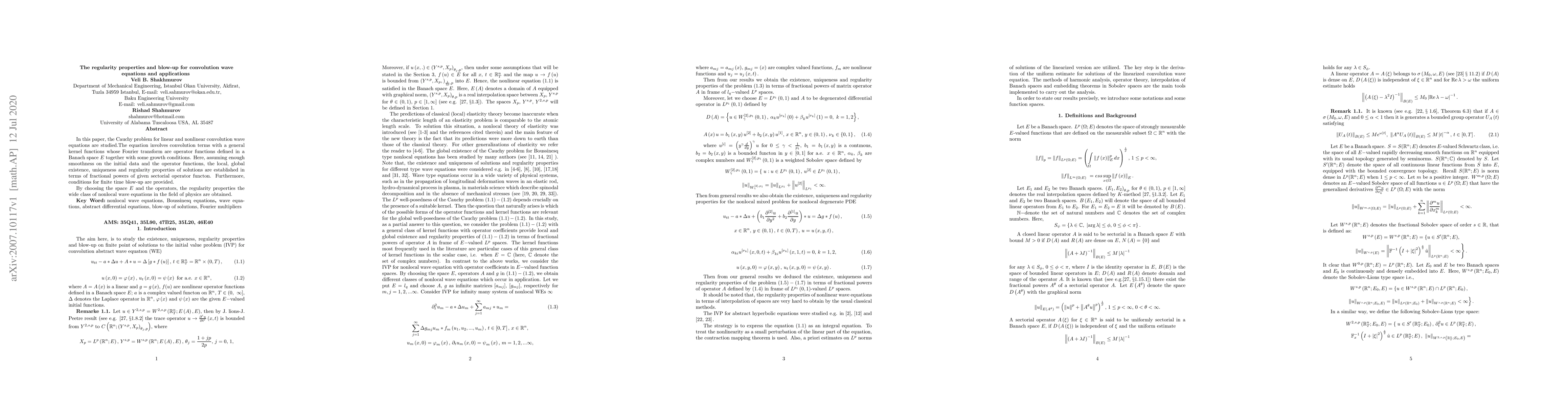 This paper studies the regularity properties and blow-up of convolution wave equations, establishing existence, uniqueness, and regularity conditions for solutions in terms of fractional powers of sectorial operator functions, with implications for nonlocal wave equations in physics.