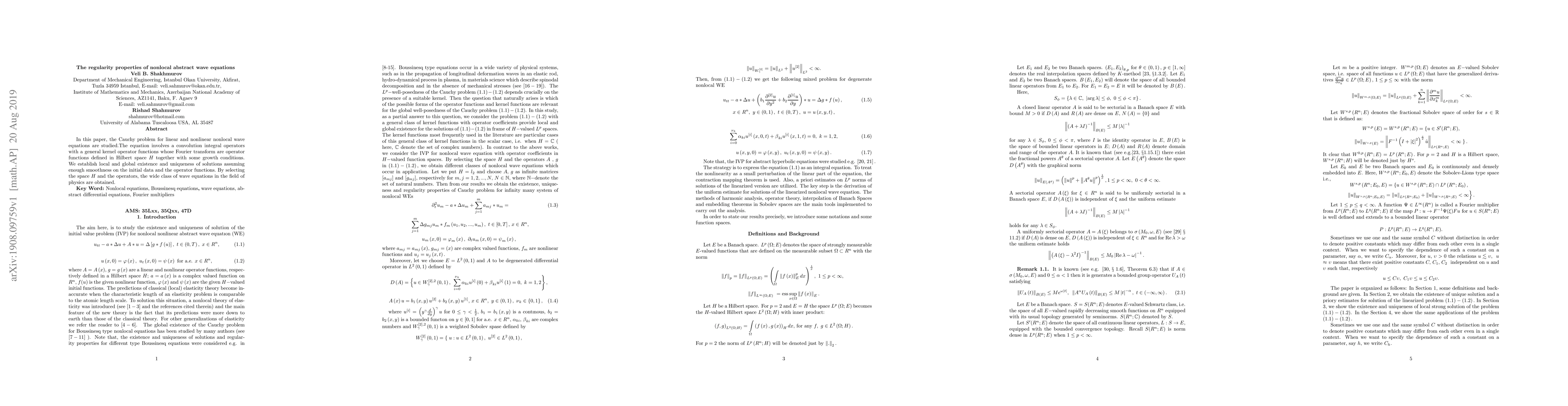 In this paper, the regularity properties of Cauchy problem for linear and nonlinear nonlocal wave equations are studied.The equation involves a convolution integral operators with a general kernel operator functions whose Fourier transform are operator functions defined in Hilbert space H together with some growth conditions. We establish local and global existence and uniqueness of solutions assuming enough smoothness on the initial data and the operator functions. By selecting the space H and the operators, the wide class of wave equations in the field of physics are obtained.