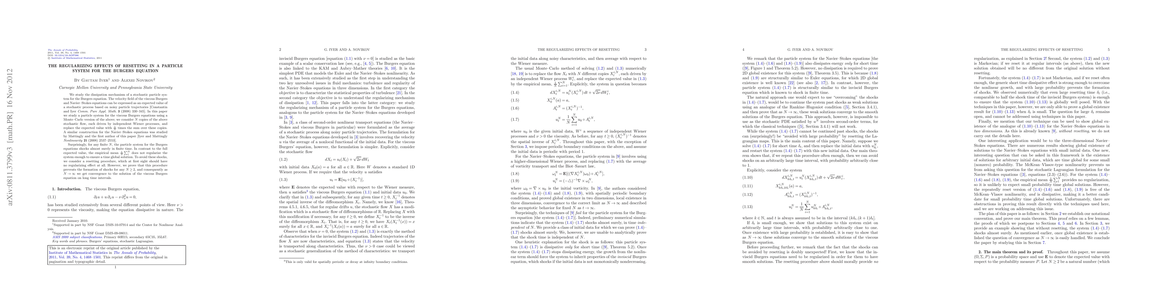 A stochastic particle system for the viscous Burgers equation is studied, showing that a resetting procedure prevents shock formation and leads to convergence to the solution on long time intervals.