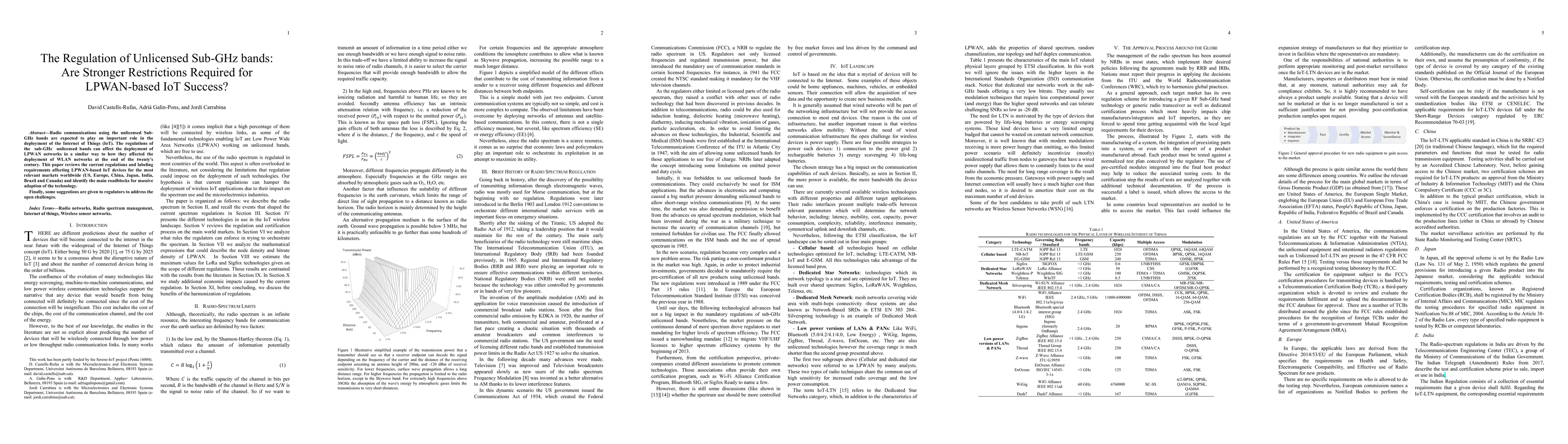This paper examines the current regulations governing unlicensed Sub-GHz bands and their impact on the deployment of LPWAN-based IoT networks, identifying key regulatory barriers in major markets and offering recommendations for regulatory improvements to facilitate widespread IoT adoption. Suggestions are provided to address these challenges and enhance the success of LPWAN technology.