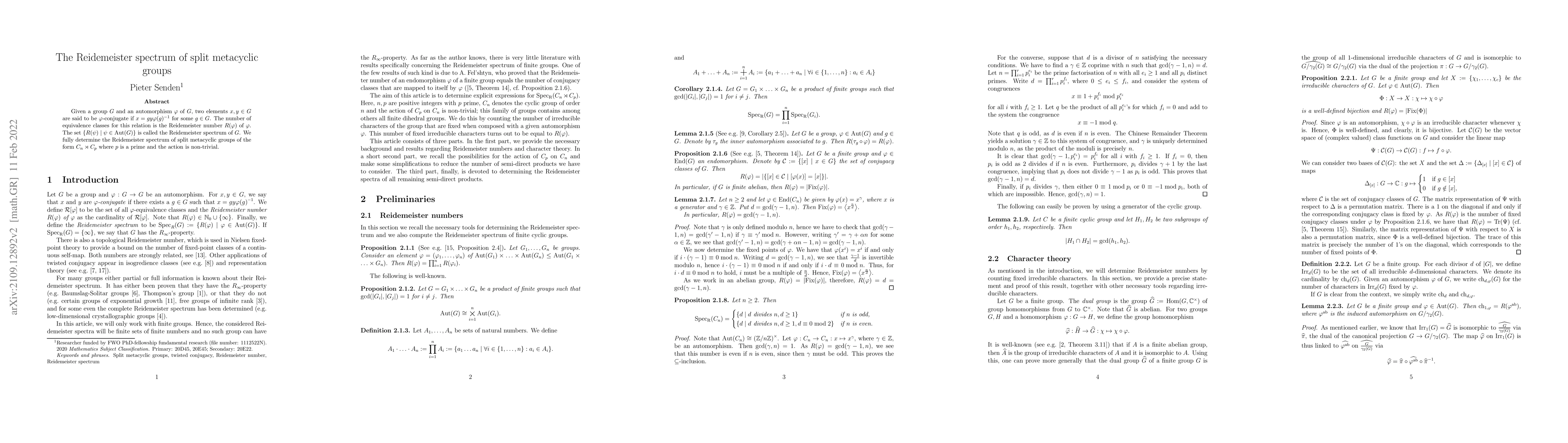 Given a group $G$ and an automorphism $\varphi$ of $G$, two elements $x, y \in G$ are said to be $\varphi$-conjugate if $x = gy \varphi(g)^{-1}$ for some $g \in G$. The number of equivalence classes for this relation is the Reidemeister number $R(\varphi)$ of $\varphi$. The set $\{R(\psi) \mid \psi \in \mathrm{Aut}(G)\}$ is called the Reidemeister spectrum of $G$. We fully determine the Reidemeister spectrum of split metacyclic groups of the form $C_{n} \rtimes C_{p}$ where $p$ is a prime and the action is non-trivial.