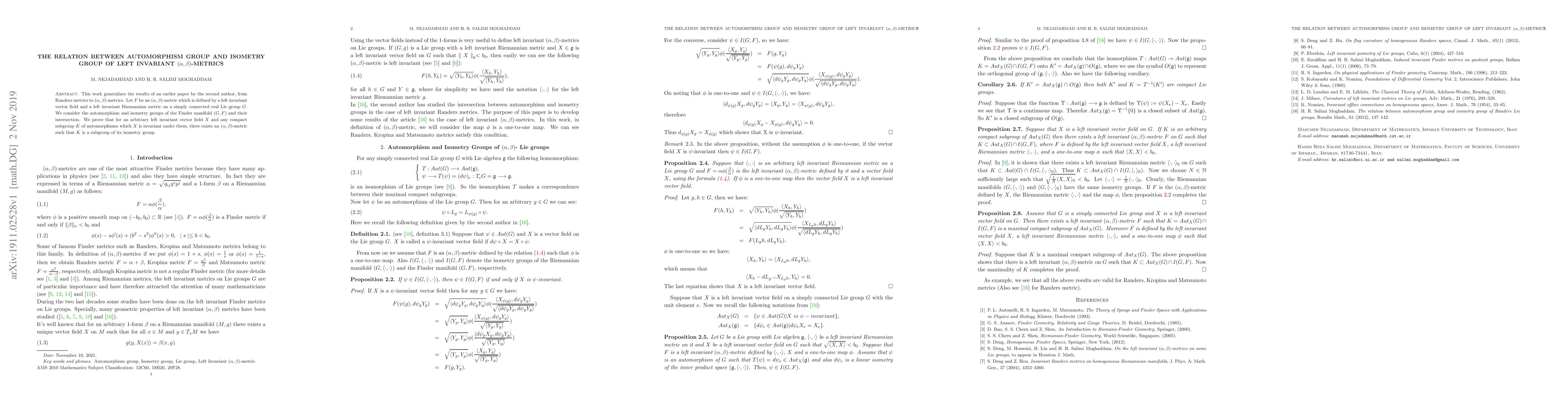 This work generalizes the results of an earlier paper by the second author, from Randers metrics to $(\alpha,\beta)$-metrics. Let $F$ be an $(\alpha,\beta)$-metric which is defined by a left invariant vector field and a left invariant Riemannian metric on a simply connected real Lie group $G$. We consider the automorphism and isometry groups of the Finsler manifold $(G,F)$ and their intersection. We prove that for an arbitrary left invariant vector field $X$ and any compact subgroup $K$ of automorphisms which $X$ is invariant under them, there exists an $(\alpha,\beta)$-metric such that $K$ is a subgroup of its isometry group.