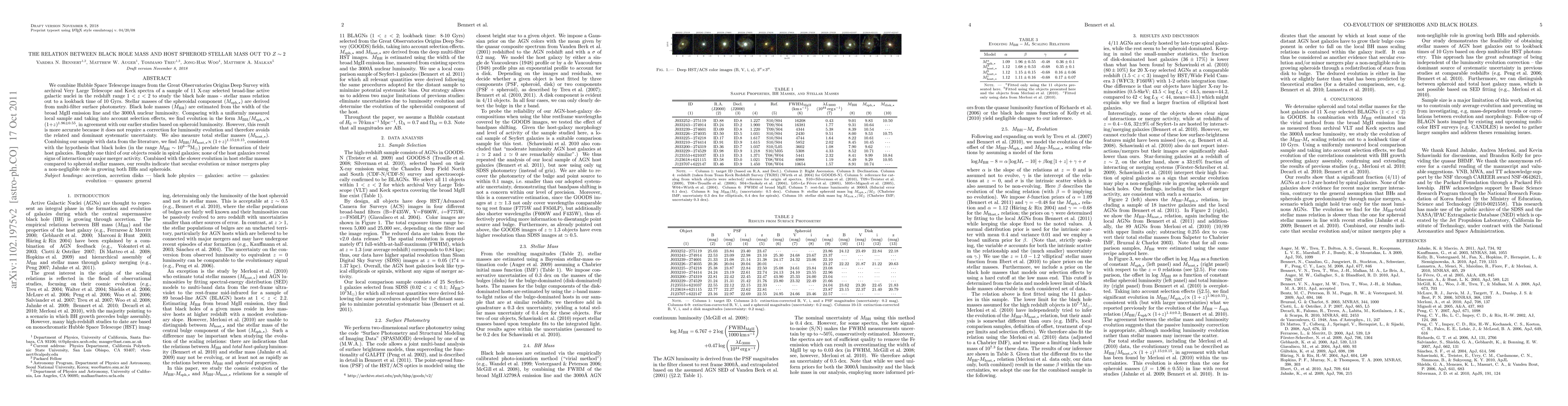 This study combines Hubble Space Telescope images and spectra to investigate the black hole mass-stellar mass relation in active galactic nuclei up to a redshift of 2. The findings suggest an evolution in the ratio M_BH/M_spheroid ~ (1+z)^(1.96+/-0.55), indicating that black holes grow faster than their host spheroids, supporting the hypothesis that black holes predate the formation of their host galaxies.