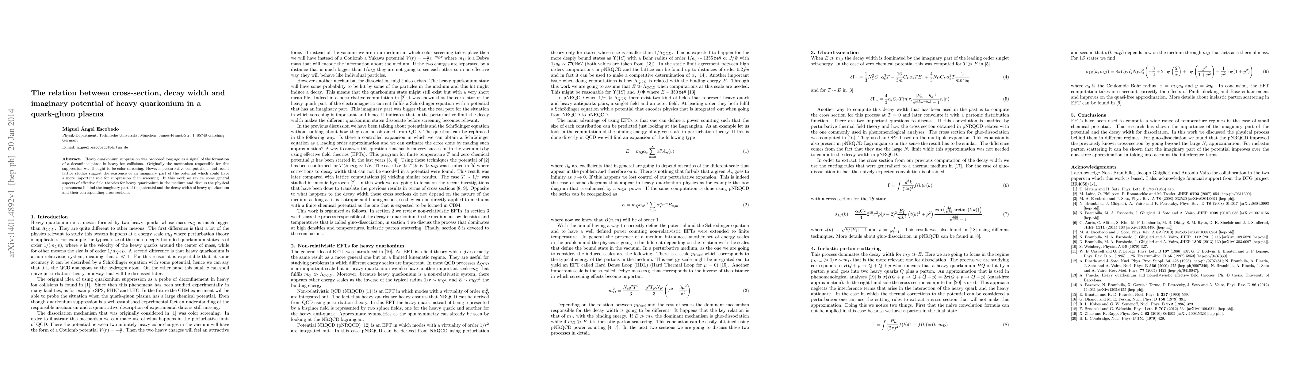 Heavy quarkonium suppression was proposed long ago as a signal of the formation of a deconfined phase in heavy ion collisions. Originally the mechanism responsible for this suppression was thought to be color screening. However perturbative computations and recent lattice studies suggest the existence of an imaginary part of the potential which could have a more important role for suppression than screening. In this work we review some general aspects of effective field theories for heavy quarkonium in the medium and discuss the physical phenomena behind the imaginary part of the potential and the decay width of heavy quarkonium and their corresponding cross sections.