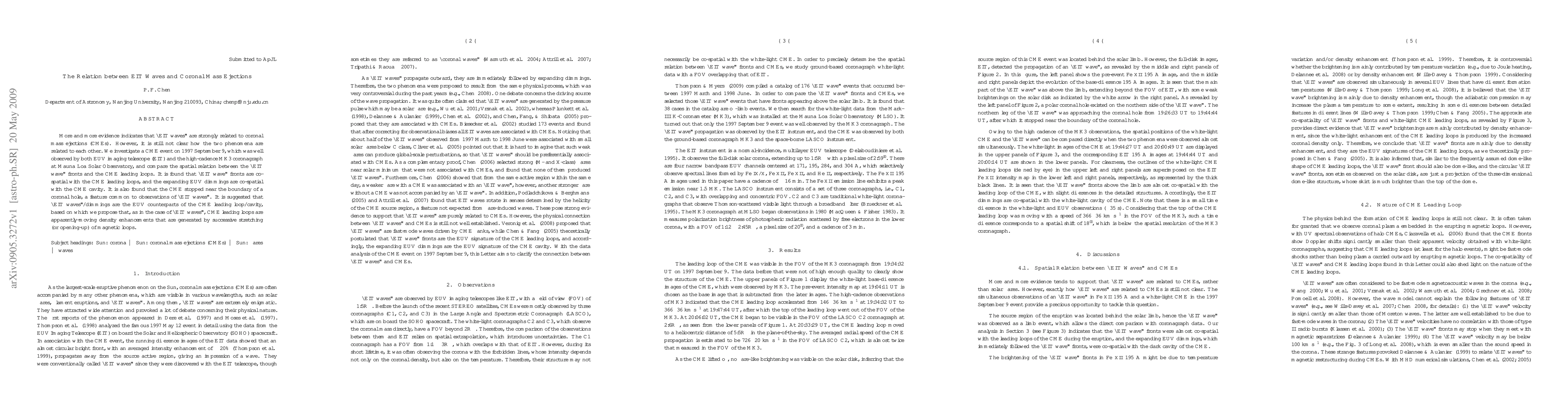 This study investigates the relationship between EIT waves and coronal mass ejections (CMEs), finding that EIT wave fronts coincide with CME leading loops and expanding EUV dimmings with CME cavities. The paper suggests that EIT waves are the EUV counterparts of CME leading loops, proposing that both phenomena are generated by the stretching of magnetic loops.