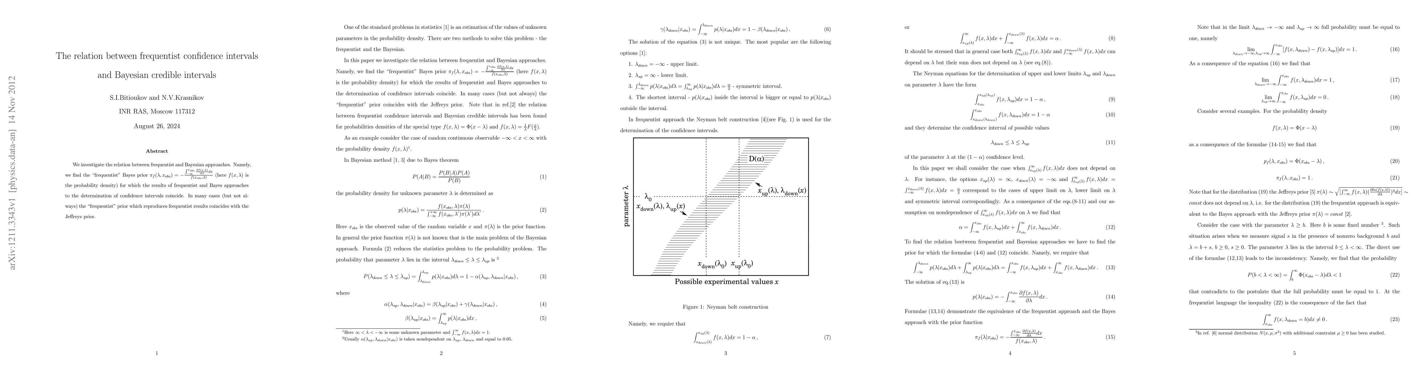 This paper explores the relationship between frequentist confidence intervals and Bayesian credible intervals, identifying a "frequentist" Bayes prior that aligns the results of both approaches. The study finds that in many cases, this frequentist prior aligns with the Jeffreys prior.