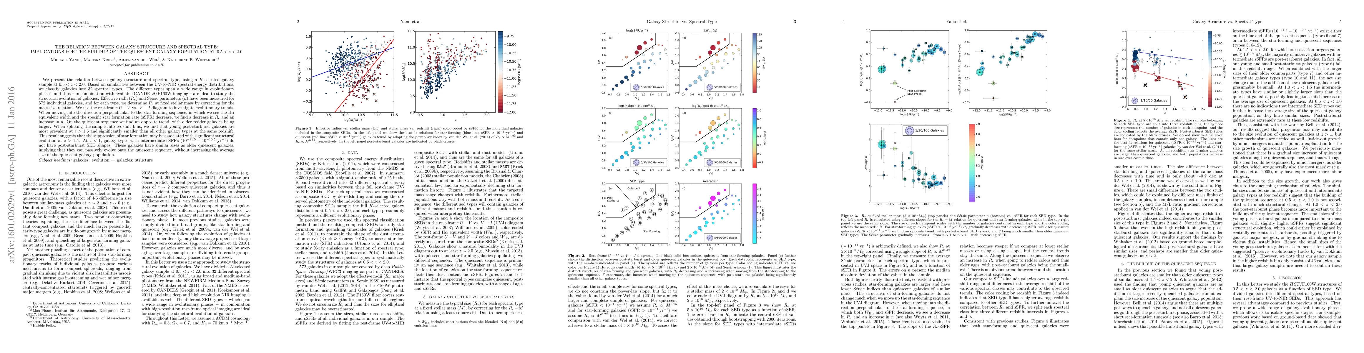 This paper explores the connection between galaxy structure and spectral type in quiescent galaxies at redshifts 0.5<z<2.0, finding that galaxies with decreasing star formation rates exhibit decreasing effective radii and increasing Sersic parameters, indicating structural evolution. The study suggests that the suppression of star formation at higher redshifts is linked to significant structural changes, while galaxies with intermediate star formation rates evolve passively without affecting the average size of the quiescent galaxy population.