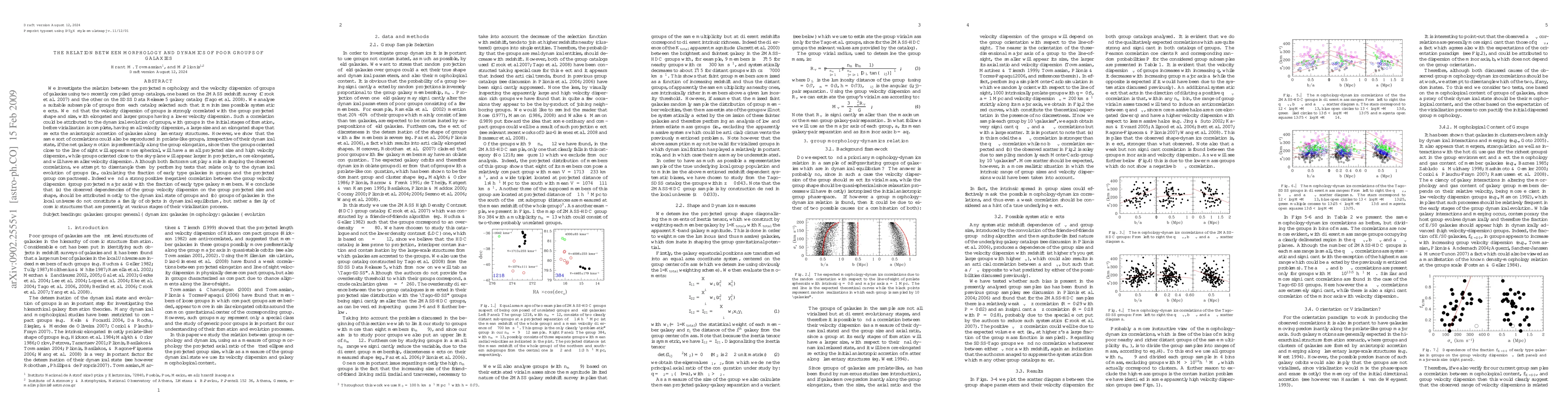 We investigate the relation between the projected morphology (b/a) and the velocity dispersion (sigma_v) of groups of galaxies using two recently compiled group catalogs, one based on the 2MASS redshift survey and the other on the SDSS Data Release 5 galaxy catalog. We find that the sigma_v of groups is strongly correlated with the group projected b/a and size, with elongated and larger groups having a lower sigma_v. Such a correlation could be attributed to the dynamical evolution of groups, with groups in the initial stages of formation, having small sigma_v, a large size and an elongated shape that reflects the anisotropic accretion of galaxies along filamentary structures. The same sort of correlations, however, could also be reproduced in prolate-like groups, if the net galaxy motion is preferentially along the group elongation, since then the groups oriented close to the line of sight will appear more spherical, will have a small projected size and large sigma_v, while groups oriented close to the sky-plane will appear larger in projection, more elongated, and will have smaller sigma_v. We perform tests that relate only to the dynamical evolution of groups (eg., calculating the fraction of early type galaxies in groups) and indeed we find a strong positive (negative) correlation between the group sigma_v (projected major axis) with the fraction of early type galaxies. We conclude that (a) the observed dependencies of the group sigma_v on the group projected size and b/a, should be attributed mostly to the dynamical state of groups and (b) groups in the local universe do not constitute a family of objects in dynamical equilibrium, but rather a family of cosmic structures that are presently at various stages of their virialization process.