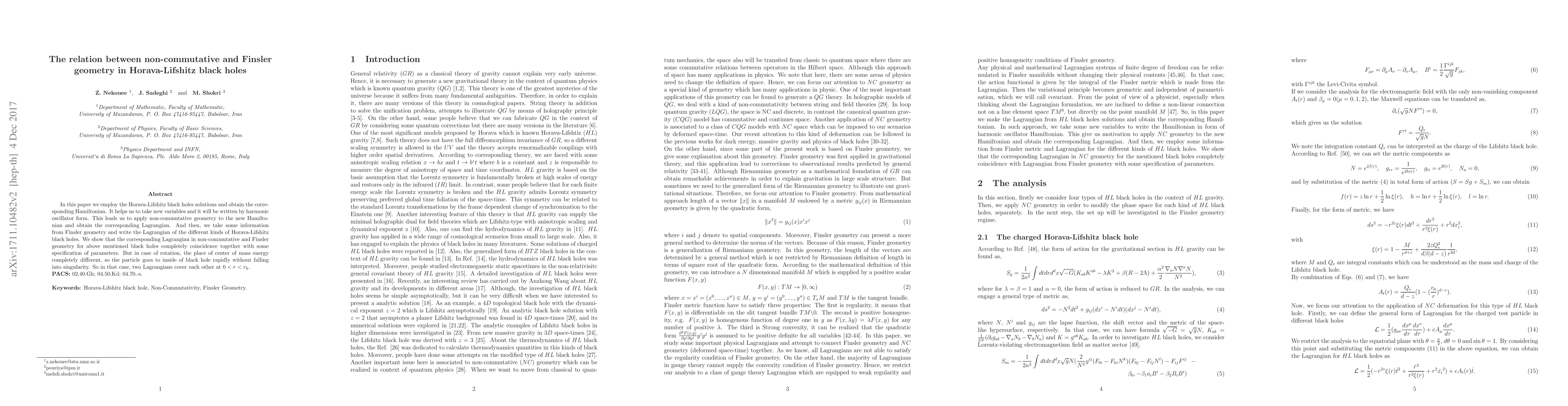 Summary: This paper explores the interplay between non-commutative geometry and Finsler geometry in Horava-Lifshitz black holes, showing that their Lagrangians coincide under specific conditions. For rotating cases, the center of mass energy changes, causing particles to rapidly fall into the black hole without reaching a singularity, where the two Lagrangians overlap within a certain radius.