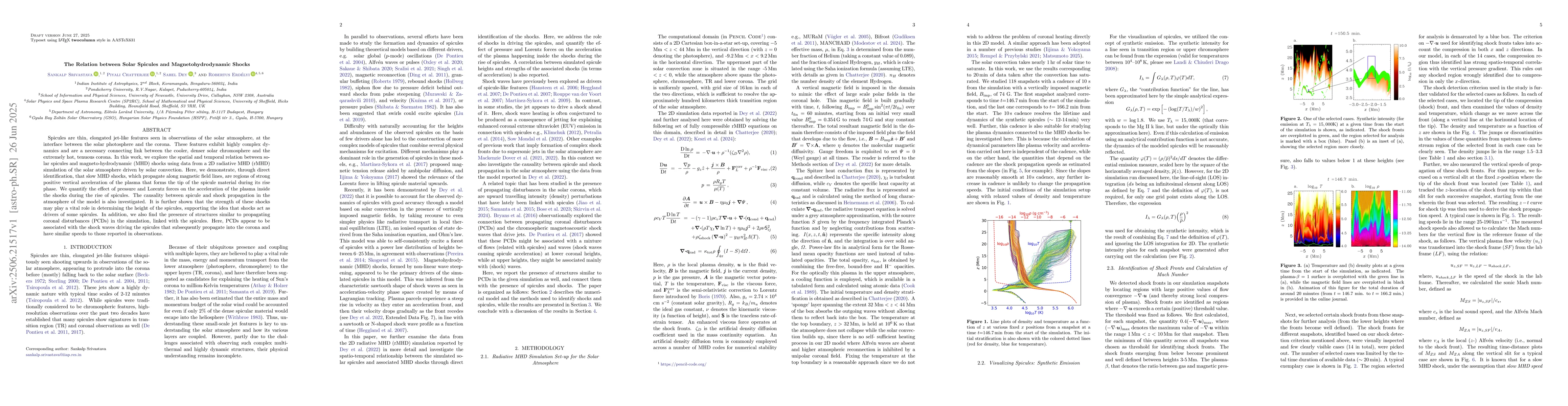 Spicules are thin, elongated jet-like features seen in observations of the solar atmosphere, at the interface between the solar photosphere and the corona. These features exhibit highly complex dynamics and are a necessary connecting link between the cooler, denser solar chromosphere and the extremely hot, tenuous corona. In this work, we explore the spatial and temporal relation between solar spicules and magneto-hydrodynamic (MHD) shocks using data from a 2D radiative MHD (rMHD) simulation of the solar atmosphere driven by solar convection. Here, we demonstrate, through direct identification, that slow MHD shocks, which propagate along magnetic field lines, are regions of strong positive vertical acceleration of the plasma that forms the tip of the spicule material during its rise phase. We quantify the effect of pressure and Lorentz forces on the acceleration of the plasma inside the shocks during the rise of spicules. The causality between spicule and shock propagation in the atmosphere of the model is also investigated. It is further shown that the strength of these shocks may play a vital role in determining the height of the spicules, supporting the idea that shocks act as drivers of some spicules. In addition, we also find the presence of structures similar to propagating coronal disturbances (PCDs) in the simulation, linked with the spicules. Here, PCDs appear to be associated with the shock waves driving the spicules that subsequently propagate into the corona and have similar speeds to those reported in observations.