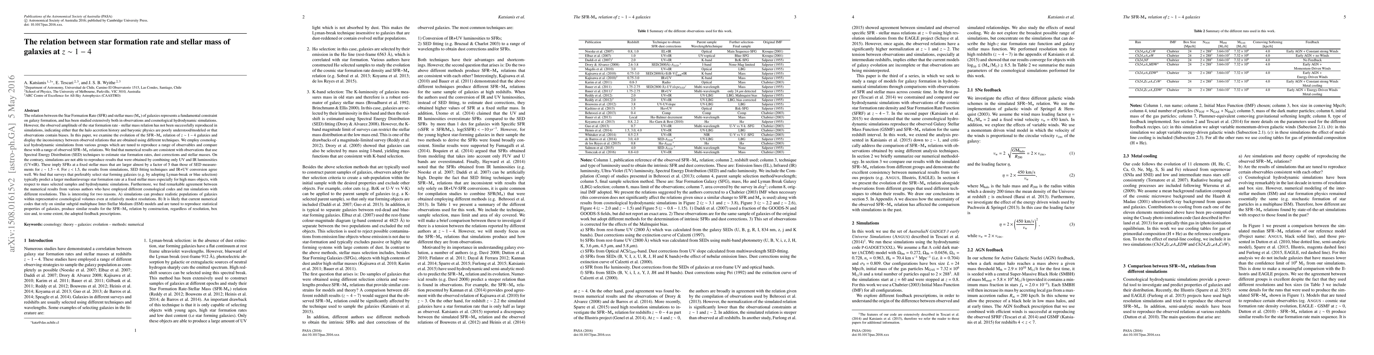 This paper investigates the relationship between star formation rate (SFR) and stellar mass (${\rm M}_{\star}$) in galaxies at redshifts $z \sim 1-4$, finding that simulations match observations using SED techniques but not those combining UV and IR luminosities. The study highlights the consistency of numerical results across different cosmological codes, suggesting that similar ISM models and feedback prescriptions lead to comparable SFR-${\rm M}_{\star}$ relations.