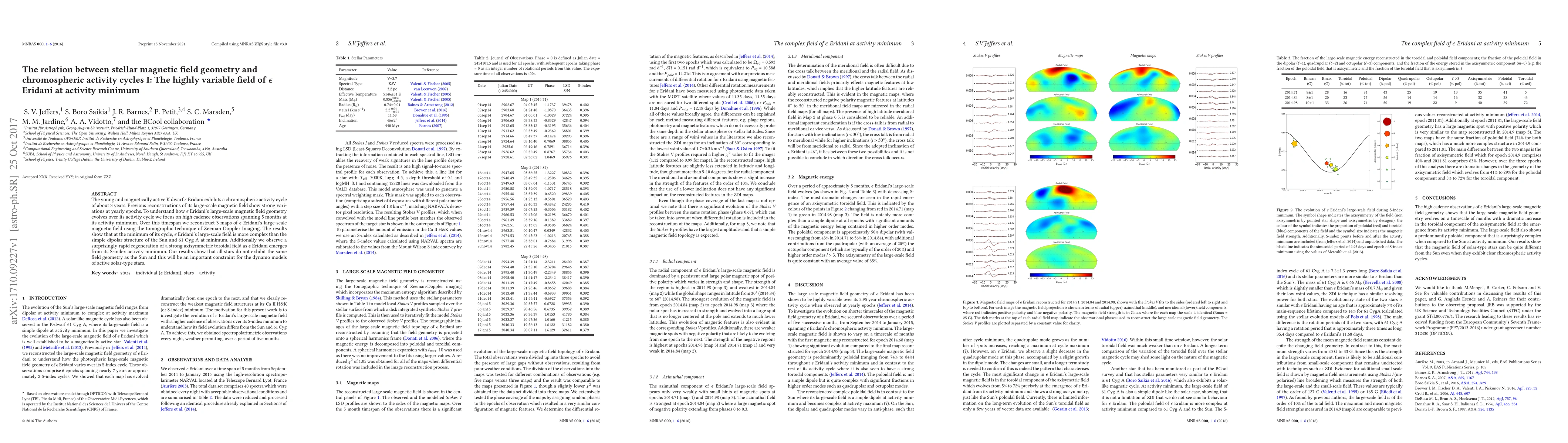 This paper investigates the magnetic field geometry of Epsilon Eridani during its chromospheric activity minimum, revealing a complex field structure and rapid regeneration of a toroidal field, challenging the Sun's simple dipolar model and providing crucial insights for solar-type star dynamo models.