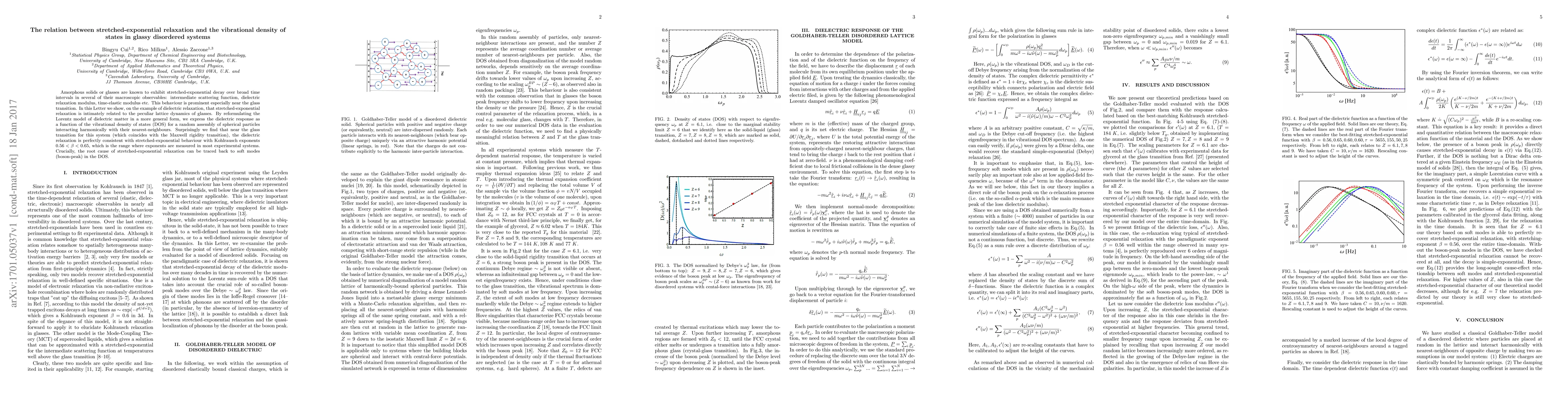 This paper explores the connection between stretched-exponential relaxation in glasses and their vibrational density of states, demonstrating that dielectric relaxation is consistent with this behaviour near the glass transition, primarily due to the influence of soft modes in the density of states.