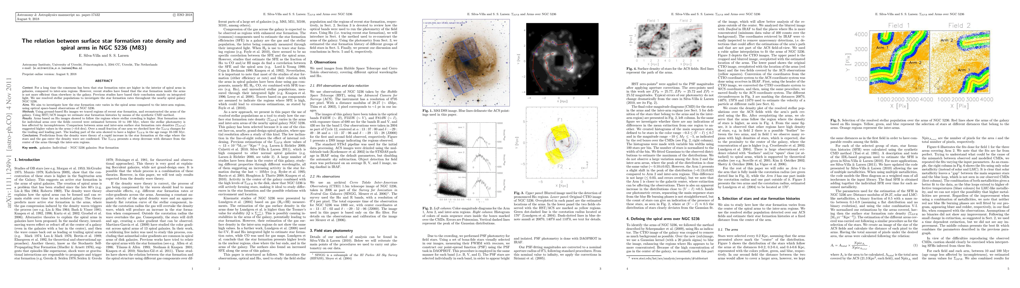 Research on galaxy NGC 5236 (M83) reveals star formation rates in spiral arms are not more efficient than inter-arm regions, with surface densities around 0.6 dex higher in the arms.