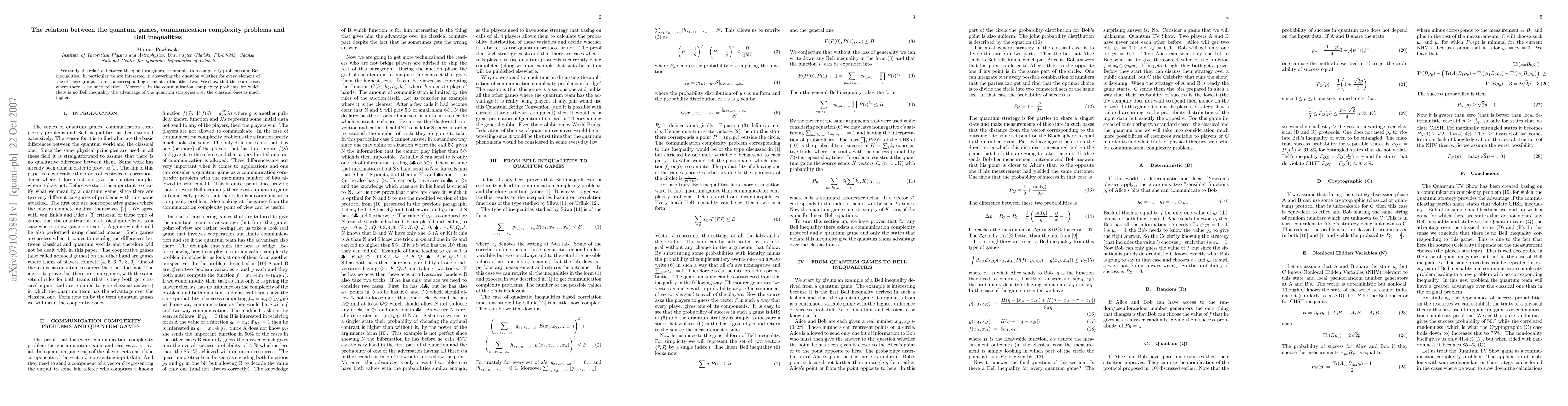 We study the relation between the quantum games, communication complexity problems and Bell inequalities. In particular we are interested in answering the question whether for every element of one of these groups there is a corresponding element in the other two. We show that there are cases where there is no such relation. Moreover, in the communication complexity problems for which there is no Bell inequality the advantage of the quantum strategies over the classical ones is much higher.