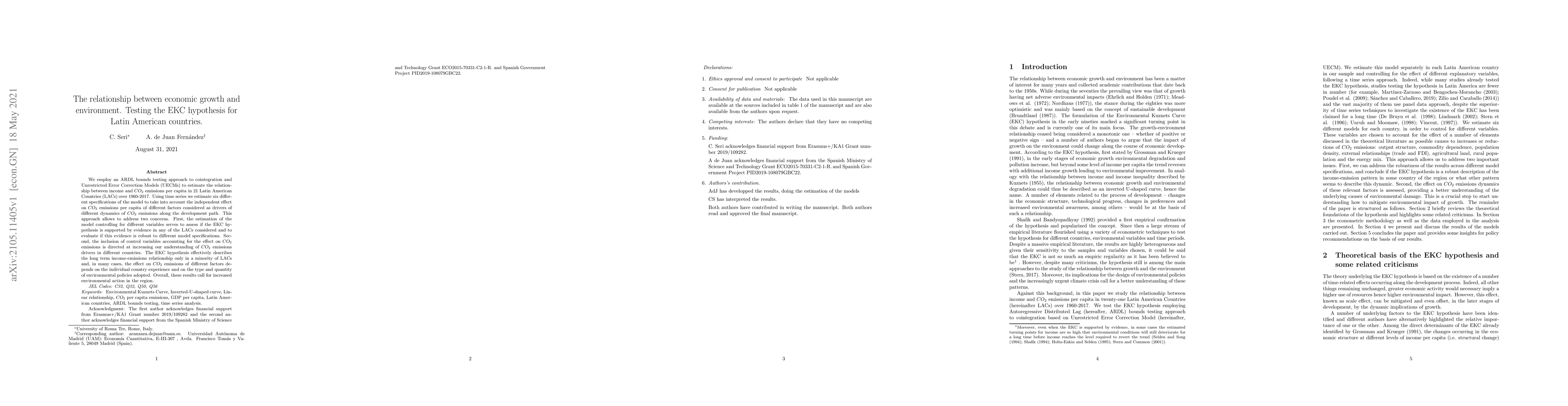 We employ an ARDL bounds testing approach to cointegration and Unrestricted Error Correction Models (UECMs) to estimate the relationship between income and CO2 emissions per capita in 21 Latin American Countries (LACs) over 1960-2017. Using time series we estimate six different specifications of the model to take into account the independent effect on CO2 emissions per capita of different factors considered as drivers of different dynamics of CO2 emissions along the development path. This approach allows to address two concerns. First, the estimation of the model controlling for different variables serves to assess if the EKC hypothesis is supported by evidence in any of the LACs considered and to evaluate if this evidence is robust to different model specifications. Second, the inclusion of control variables accounting for the effect on CO2 emissions is directed at increasing our understanding of CO2 emissions drivers in different countries. The EKC hypothesis effectively describes the long term income-emissions relationship only in a minority of LACs and, in many cases, the effect on CO2 emissions of different factors depends on the individual country experience and on the type and quantity of environmental policies adopted. Overall, these results call for increased environmental action in the region.
