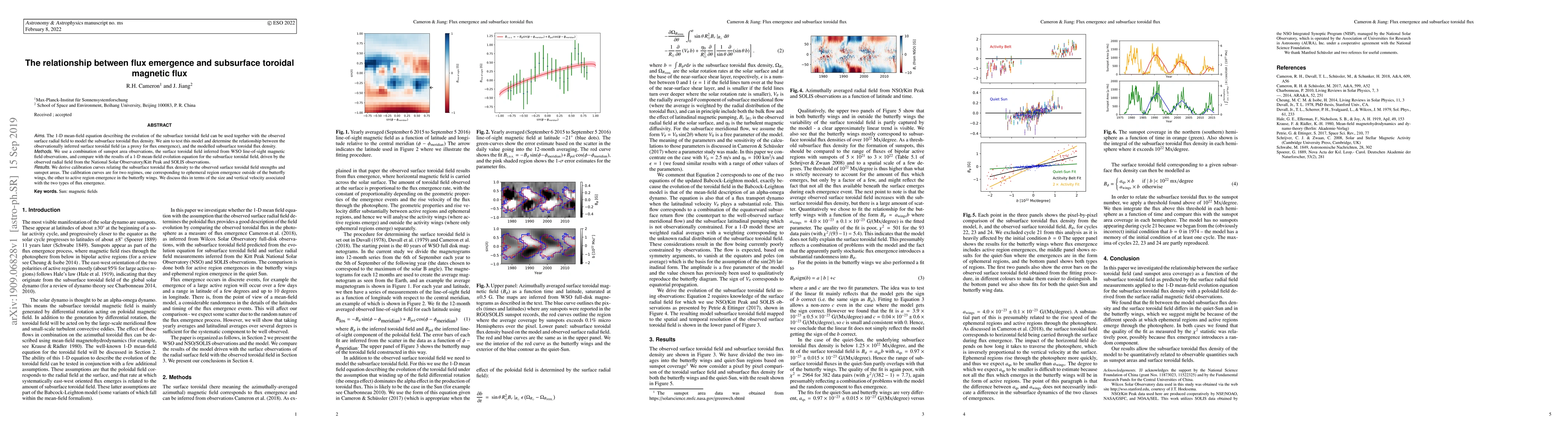 The 1-D mean-field equation describing the evolution of the subsurface toroidal field can be used together with the observed surface radial field to model the subsurface toroidal flux density. We aim to test this model and determine the relationship between the observationally inferred surface toroidal field (as a proxy for flux emergence), and the modelled subsurface toroidal flux density. We use a combination of sunspot area observations, the surface toroidal field inferred from WSO line-of-sight magnetic field observations, and compare with the results of a 1-D mean-field evolution equation for the subsurface toroidal field, driven by the observed radial field from the National Solar Observatory/Kitt Peak and SOLIS observations. We derive calibration curves relating the subsurface toroidal flux density to the observed surface toroidal field strengths and sunspot areas. The calibration curves are for two regimes, one corresponding to ephemeral region emergence outside of the butterfly wings, the other to active region emergence in the butterfly wings. We discuss this in terms of the size and vertical velocity associated with the two types of flux emergence.