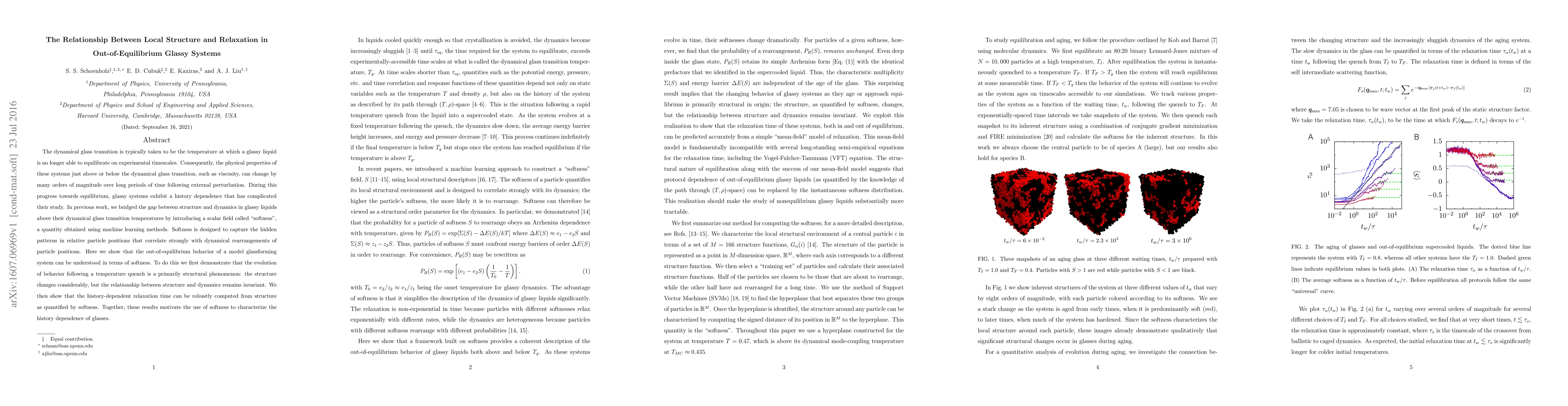 This paper investigates the relationship between local structure and relaxation in glassy systems, demonstrating that the "softness" scalar field, derived via machine learning, effectively captures the hidden patterns in particle positions correlating with dynamical rearrangements. It shows that the out-of-equilibrium behavior of glassy systems, following a temperature quench, is primarily structural, with the history-dependent relaxation time robustly computed from the structural softness.