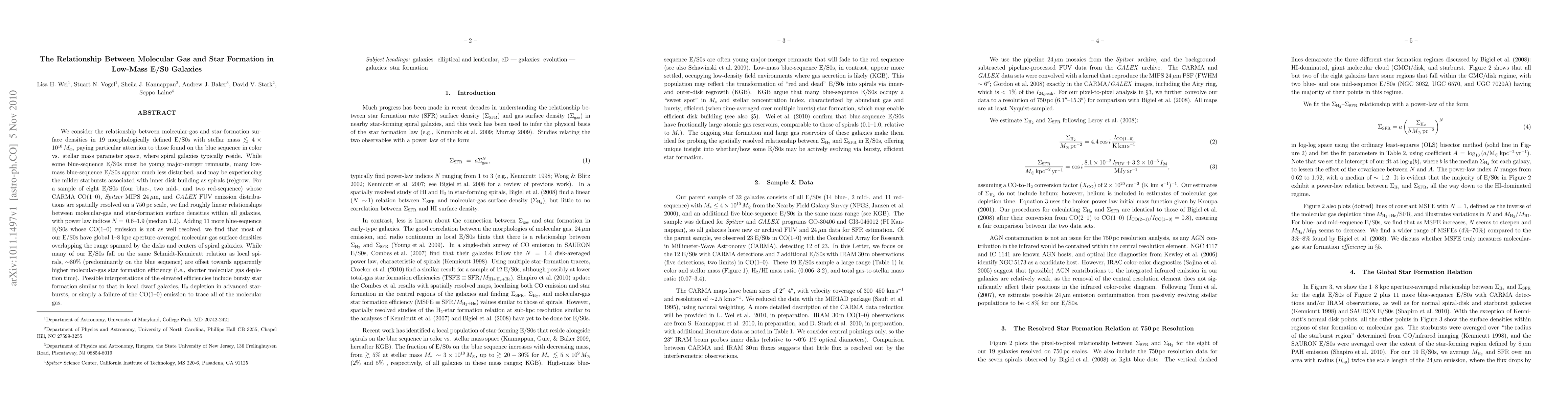 This study investigates the correlation between molecular gas and star formation in low-mass E/S0 galaxies, finding linear relationships between their surface densities and suggesting that these galaxies may experience milder starbursts akin to spiral galaxies. The research highlights that many E/S0s exhibit higher molecular gas star formation efficiency compared to spirals, potentially due to bursty star formation, advanced starbursts, or incomplete CO(1-0) tracing of molecular gas.