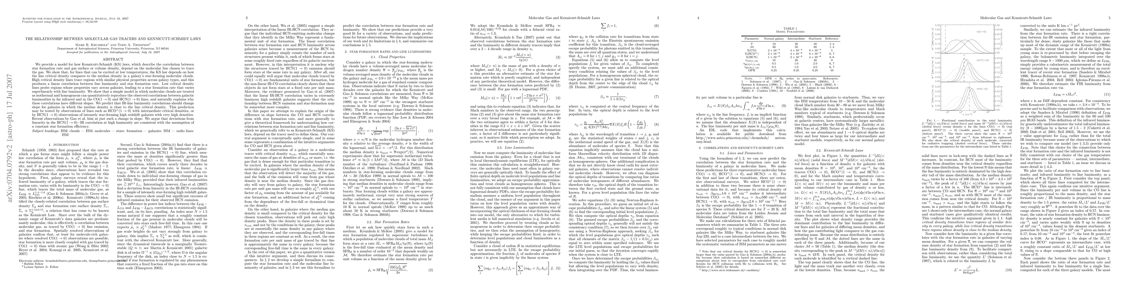 This paper models the relationship between Kennicutt-Schmidt laws and molecular gas tracers, showing that the correlation between star formation rate and gas density depends on the critical density of the chosen molecular line. It predicts that IR-line luminosity correlations will change slope when median densities approach line critical densities, a hypothesis potentially testable by observations of high-density galaxies.