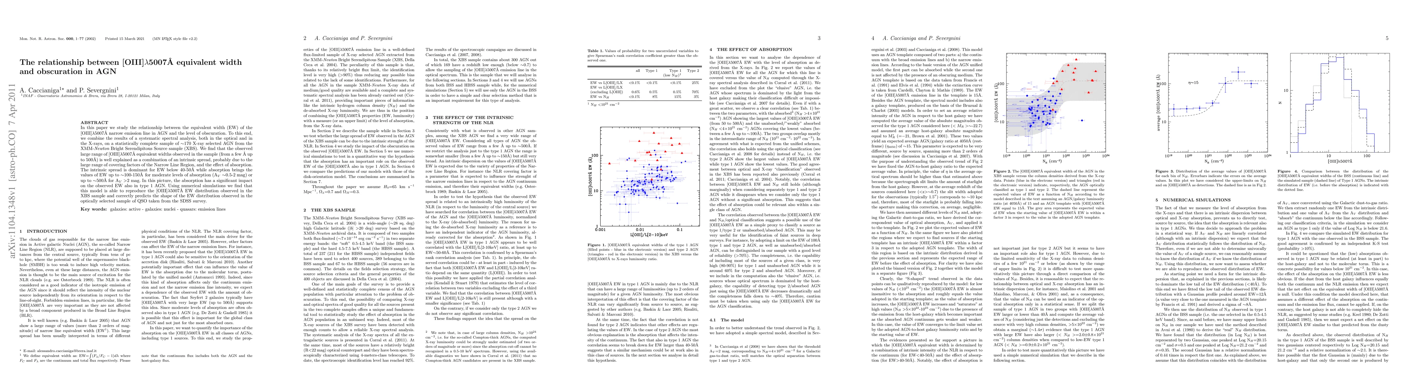 In this paper we study the relationship between the equivalent width (EW) of the [OIII]5007A narrow emission line in AGN and the level of obscuration. To this end, we combine the results of a systematic spectral analysis, both in the optical and in the X-rays, on a statistically complete sample of ~170 X-ray selected AGN from the XMM-Newton Bright Serendipitous Source sample (XBS). We find that the observed large range of [OIII]5007A equivalent widths observed in the sample (from a few A up to 500A) is well explained as a combination of an intrinsic spread, probably due to the large range of covering factors of the Narrow Line Region, and the effect of absorption. The intrinsic spread is dominant for EW below 40-50A while absorption brings the values of EW up to ~100-150A, for moderate levels of absorption (AV~0.5-2 mag) or up to ~500A for AV>2 mag. In this picture, the absorption has a significant impact on the observed EW also in type~1 AGN. Using numerical simulations we find that this model is able to reproduce the [OIII]5007A EW distribution observed in the XBS sample and correctly predicts the shape of the EW distribution observed in the optically selected sample of QSO taken from the SDSS survey.
