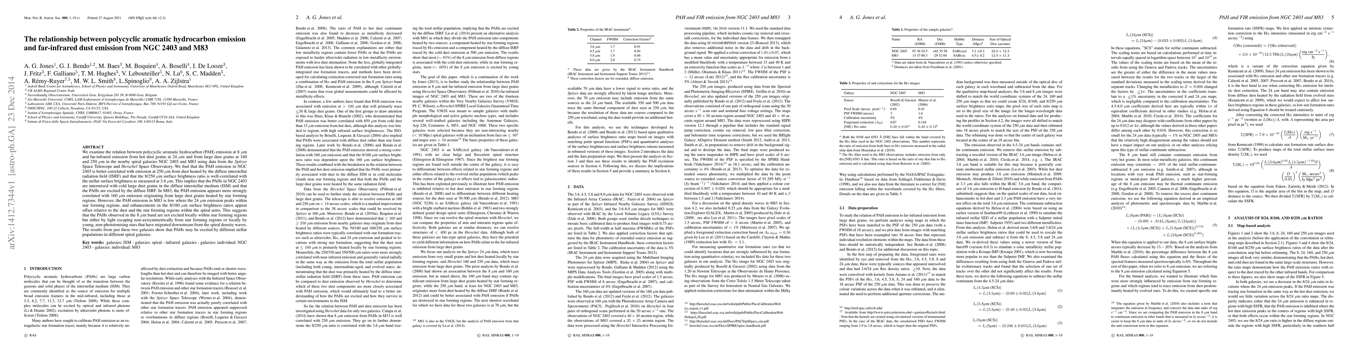 This study investigates the correlation between polycyclic aromatic hydrocarbon (PAH) emission and far-infrared dust emission in NGC 2403 and M83, revealing that PAHs in NGC 2403 are linked to cold dust grains excited by the diffuse interstellar radiation field, while in M83, PAHs are associated with large dust grains heated by star-forming regions.