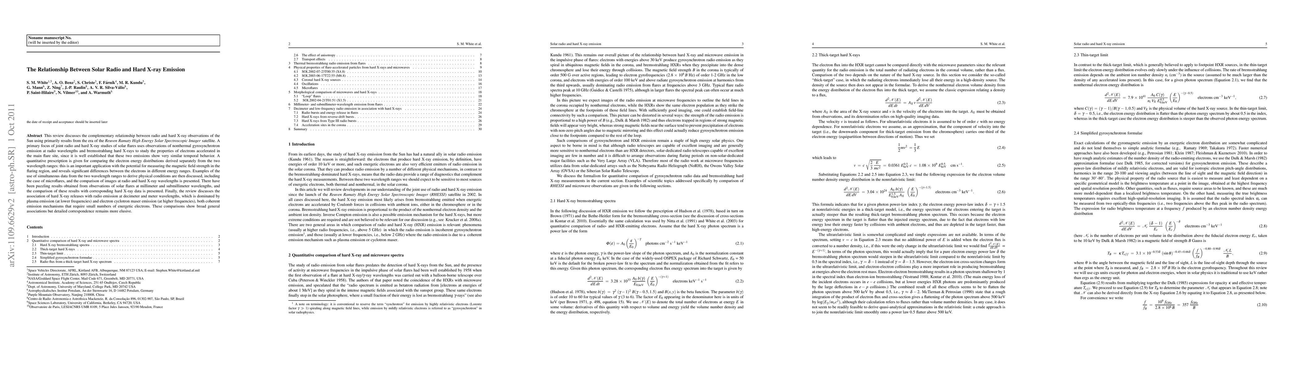 This review explores the complementary relationship between solar radio and hard X-ray emissions, primarily using data from the Reuven Ramaty High Energy Solar Spectroscopic Imager satellite. It highlights the similarities in temporal behavior between nonthermal gyrosynchrotron radio emissions and bremsstrahlung hard X-rays, and discusses their combined use for measuring magnetic field strength and deriving physical conditions in solar flares.