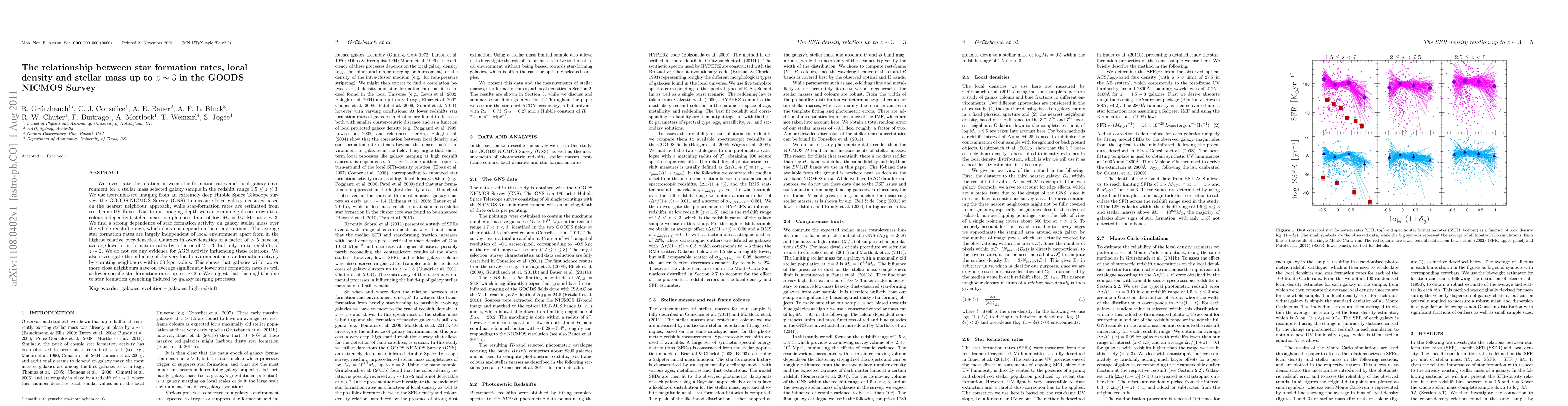 This paper examines the relationship between star formation rates and local galaxy environment in a stellar mass-selected sample up to redshift z ~ 3 using the GOODS-NICMOS Survey. It finds that star formation activity is strongly dependent on stellar mass and largely unaffected by local environment, except in the highest over-densities and nearby galaxy interactions, which suggest quenching due to merging processes.