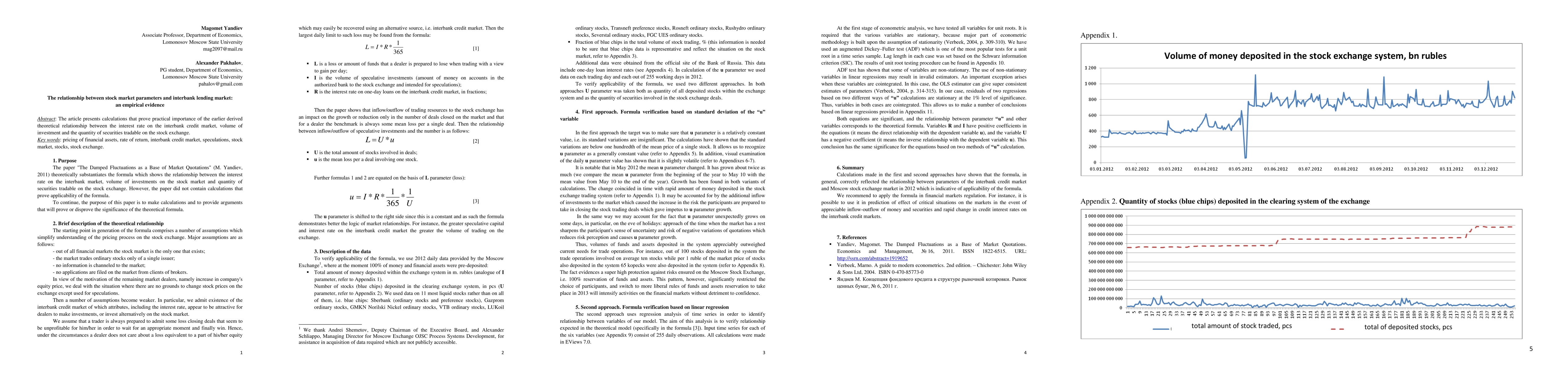 Summary: This paper empirically validates the theoretical relationship between interbank lending rates, investment volume, and stock market securities trading, demonstrating their practical significance in financial markets. The findings underscore the interconnectedness of these stock market parameters and interbank lending.