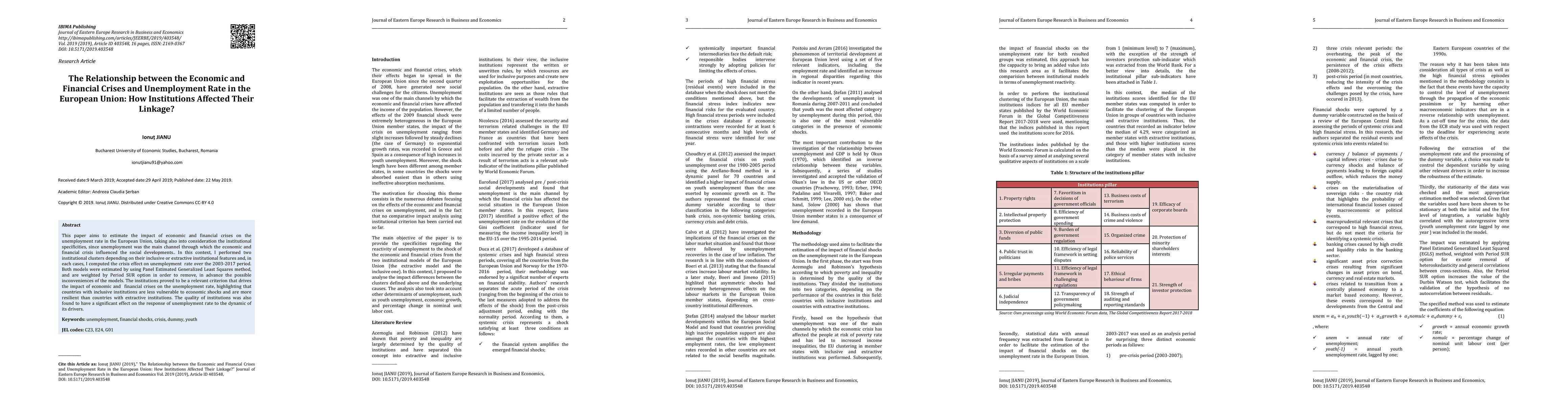 This paper investigates the impact of economic and financial crises on unemployment in the European Union, emphasizing the role of institutional differences. It finds that countries with inclusive institutions are more resilient to economic shocks compared to those with extractive institutions.