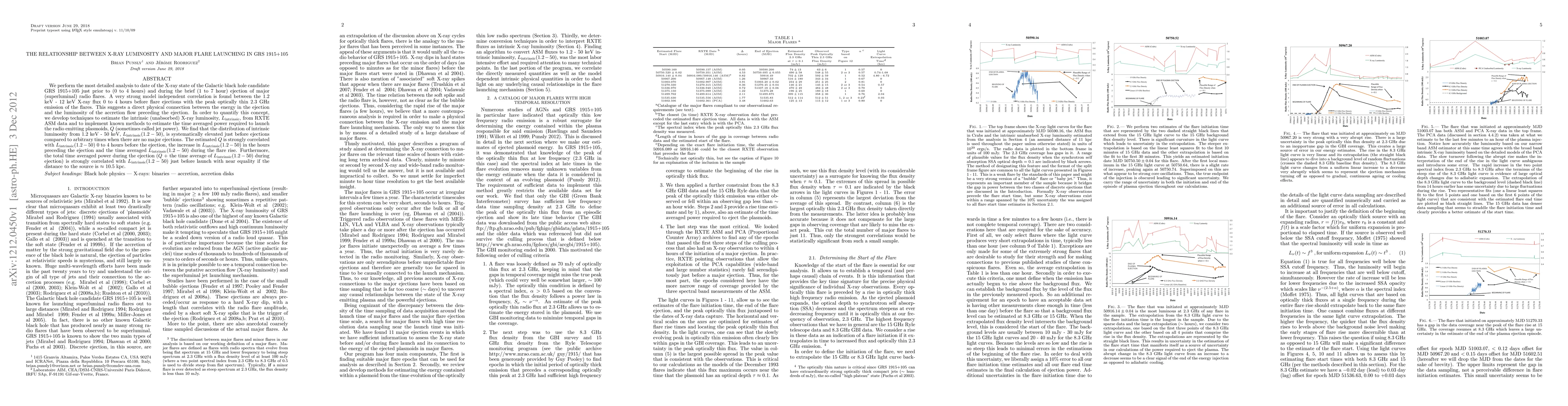 We perform the most detailed analysis to date of the X-ray state of the Galactic black hole candidate GRS 1915+105 just prior to (0 to 4 hours) and during the brief (1 to 7 hour) ejection of major (superluminal) radio flares. A very strong model independent correlation is found between the 1.2 keV - 12 keV X-ray flux 0 to 4 hours before flare ejections with the peak optically thin 2.3 GHz emission of the flares. This suggests a direct physical connection between the energy in the ejection and the luminosity of the accretion flow preceding the ejection. In order to quantify this concept, we develop techniques to estimate the intrinsic (unabsorbed) X-ray luminosity, $L_{\mathrm{intrinsic}}$, from RXTE ASM data and to implement known methods to estimate the time averaged power required to launch the radio emitting plasmoids, $Q$ (sometimes called jet power). We find that the distribution of intrinsic luminosity from 1.2 keV - 50 keV, $L_{\mathrm{intrinsic}}(1.2 - 50)$, is systematically elevated just before ejections compared to arbitrary times when there are no major ejections. The estimated $Q$ is strongly correlated with $L_{\mathrm{intrinsic}}(1.2 - 50)$ 0 to 4 hours before the ejection, the increase in $L_{\mathrm{intrinsic}}(1.2 - 50)$ in the hours preceding the ejection and the time averaged $L_{\mathrm{intrinsic}}(1.2 - 50)$ during the flare rise. Furthermore, the total time averaged power during the ejection ($Q$ + the time average of $L_{\mathrm{intrinsic}}(1.2 - 50)$ during ejection) is strongly correlated with $L_{\mathrm{intrinsic}}(1.2 - 50)$ just before launch with near equality if the distance to the source is $ \approx 10.5$ kpc.