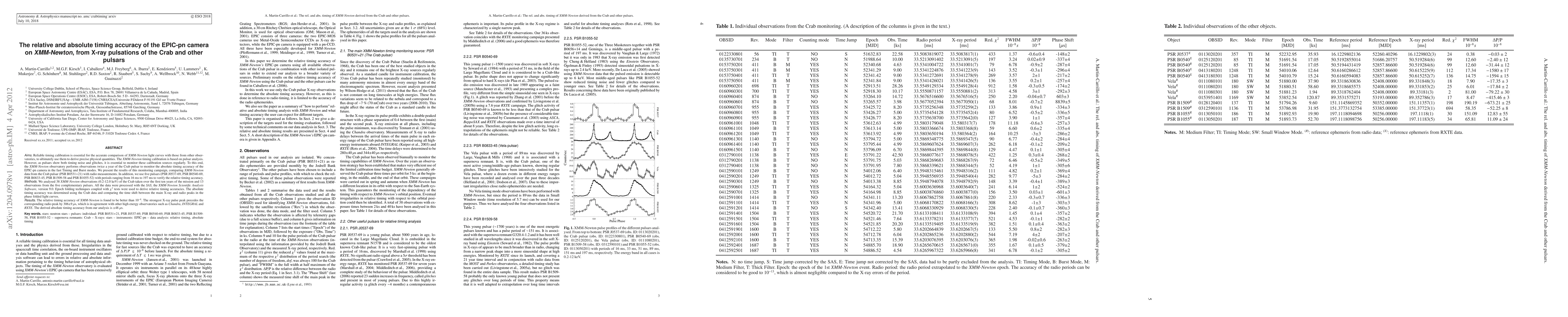 This paper assesses the timing accuracy of the EPIC-pn camera on XMM-Newton using X-ray pulsations from the Crab pulsar and five other pulsars. The relative timing accuracy is better than 10^{-8}, and the absolute timing accuracy is determined to be ±48 μs, aligning with other high-energy observatories.