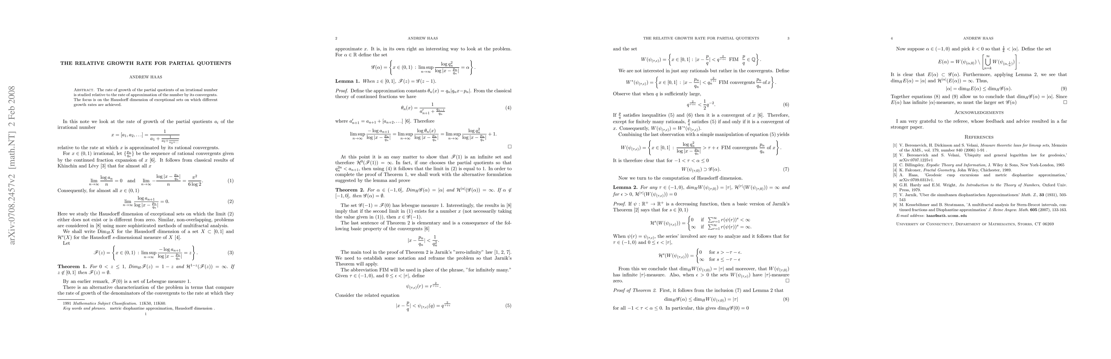 We look at the rate of growth of the partial quotients of the infinite continued fraction expansion of an irrational number relative to the rate of approximation of the number by its convergents. In non-generic cases the Hausdorff dimension of some exceptional sets is computed.