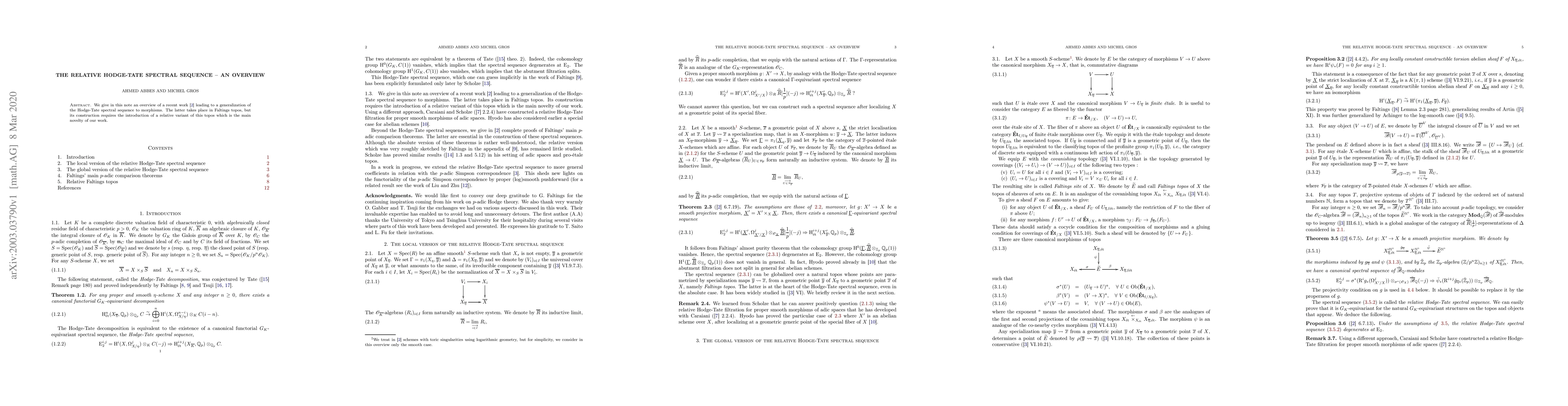 This paper provides an overview of a recent generalization of the Hodge-Tate spectral sequence to morphisms, introducing a relative variant of the Faltings topos as the main novelty of the work. The construction occurs within this new relative topos.