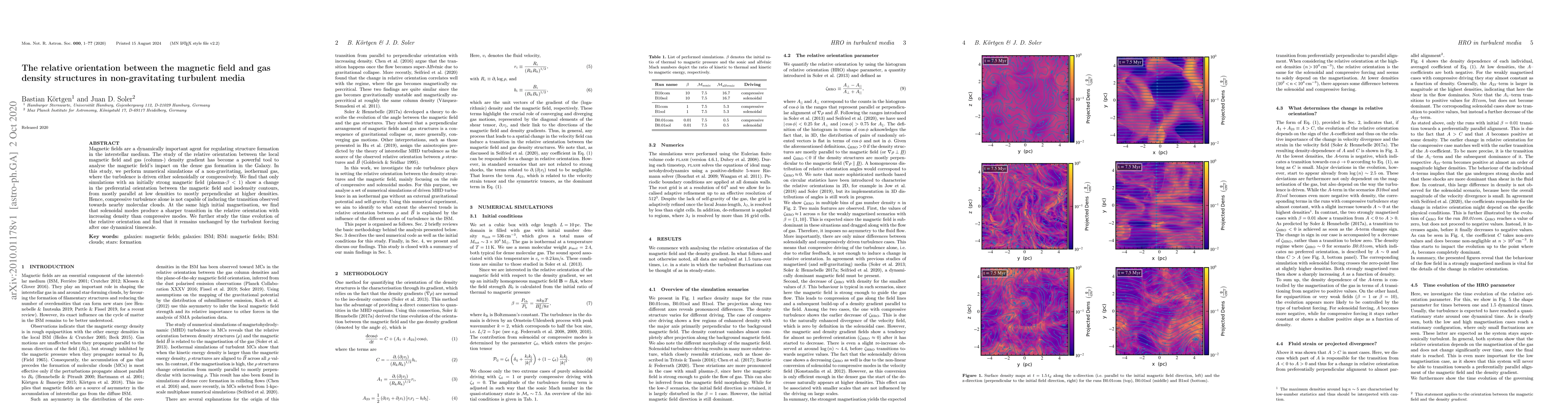 This study investigates the relationship between magnetic fields and gas density structures in non-gravitating turbulent media through numerical simulations. It finds that only strong initial magnetic fields cause a shift in the orientation from parallel to perpendicular with increasing gas density, indicating that compressive turbulence alone cannot induce this transition.