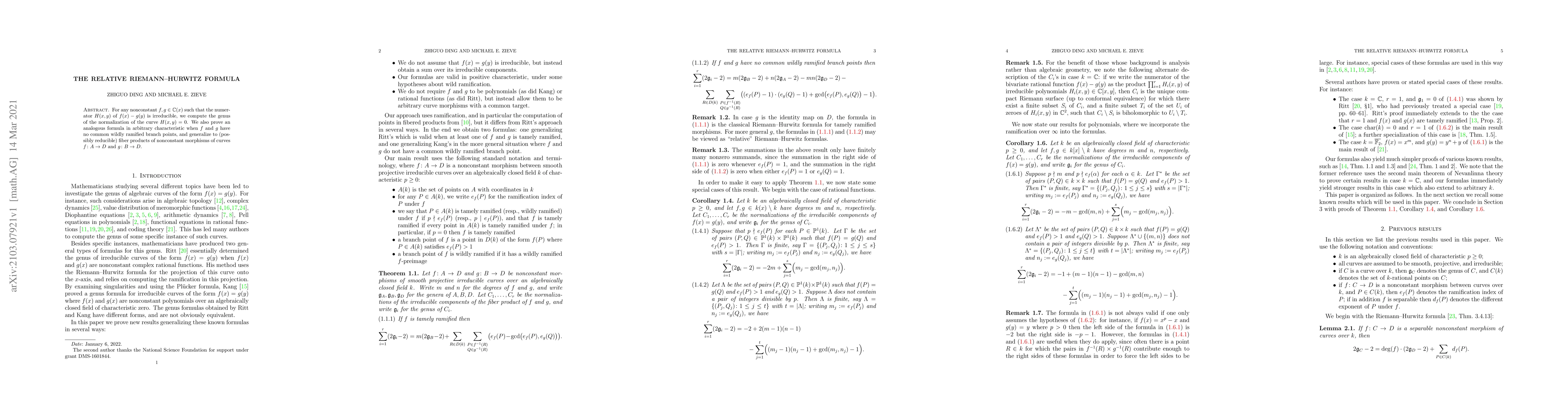 For any nonconstant f,g in C(x) such that the numerator H(x,y) of f(x)-g(y) is irreducible, we compute the genus of the normalization of the curve H(x,y)=0. We also prove an analogous formula in arbitrary characteristic when f and g have no common wildly ramified branch points, and generalize to (possibly reducible) fiber products of nonconstant morphisms of curves f:A-->D and g:B-->D.