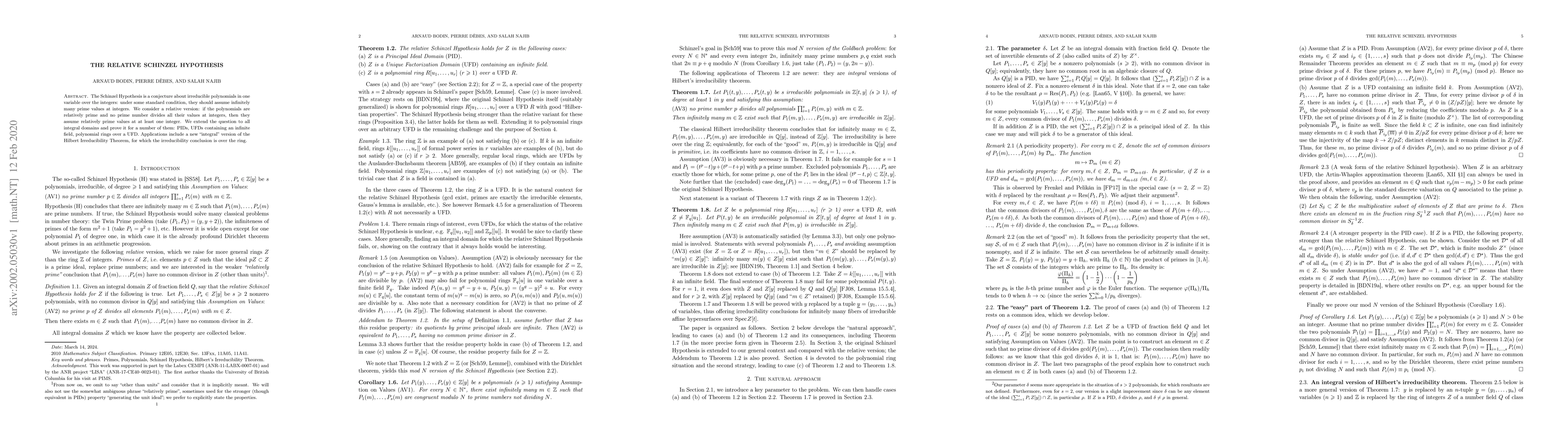 The Schinzel Hypothesis is a conjecture about irreducible polynomials in one variable over the integers: under some standard condition, they should assume infinitely many prime values at integers. We consider a relative version: if the polynomials are relatively prime and no prime number divides all their values at integers, then they assume relatively prime values at at least one integer. We extend the question to all integral domains and prove it for a number of them: PIDs, UFDs containing an infinite field, polynomial rings over a UFD. Applications include a new "integral" version of the Hilbert Irreducibility Theorem, for which the irreducibility conclusion is over the ring.