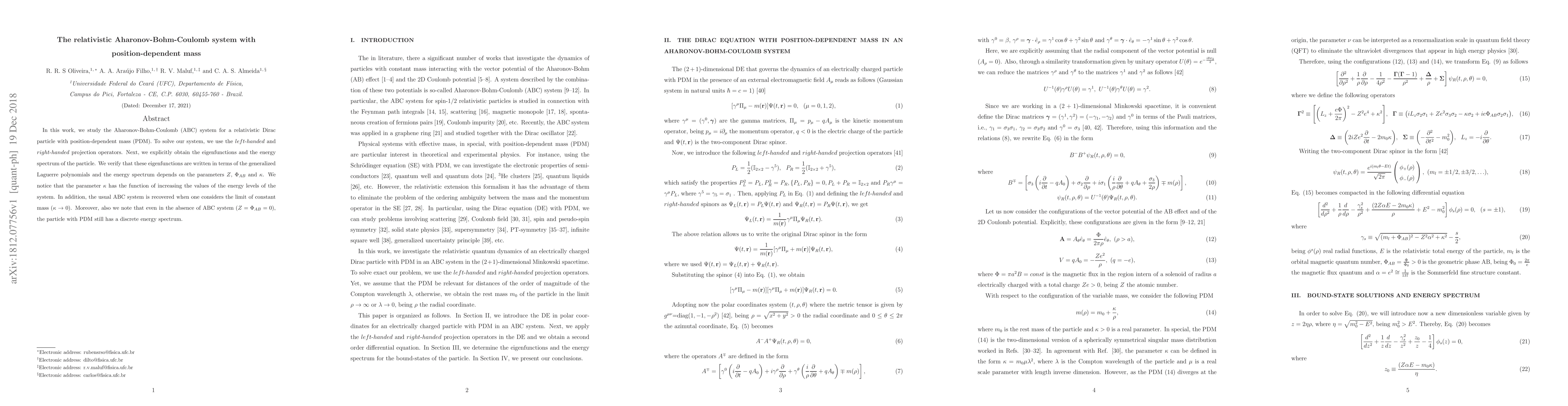 This paper investigates the relativistic Dirac particle in an Aharonov-Bohm-Coulomb system with a position-dependent mass, deriving eigenfunctions and an energy spectrum dependent on Z, $\Phi_{AB}$, and $\kappa$. The parameter $\kappa$ increases energy levels, and the constant mass limit recovers the usual ABC system. Even without the ABC effect, a particle with position-dependent mass still exhibits a discrete energy spectrum.