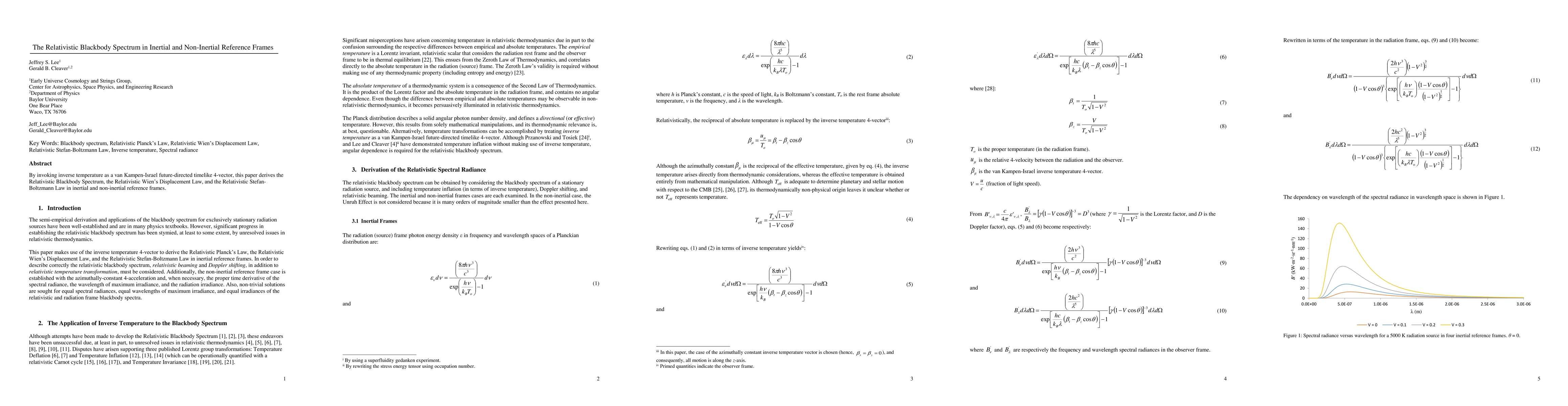 By invoking inverse temperature as a van Kampen-Isreal future-directed timelike 4-vector, this paper derives the Relativistic Blackbody Spectrum, the Relativistic Wien's Displacement Law, and the Relativistic Stefan-Boltzmann Law in inertial and non-inertial reference frames.