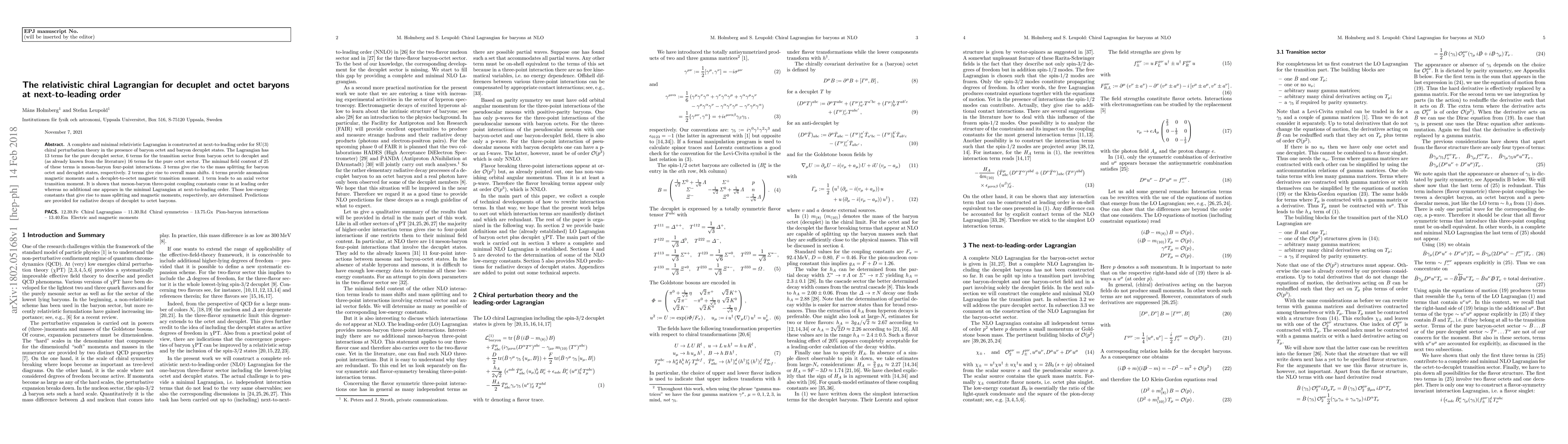 A relativistic chiral Lagrangian is constructed for decuplet and octet baryons at next-to-leading order, revealing key terms that describe mass splitting, magnetic moments, and radiative decay predictions.