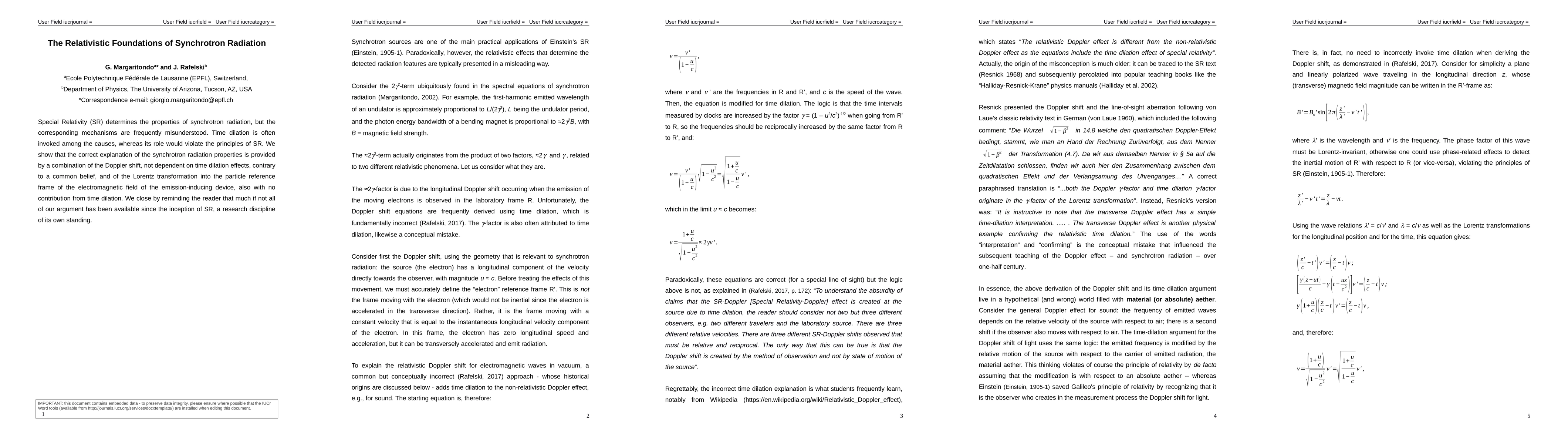 Special Relativity (SR) determines the properties of synchrotron radiation, but the corresponding mechanisms are frequently misunderstood. Time dilation is often invoked among the causes, whereas its role would violate the principles of SR. We show that the correct explanation of the synchrotron radiation properties is provided by a combination of the Doppler shift, not dependent on time dilation effects, contrary to a common belief, and of the Lorentz transformation into the particle reference frame of the electromagnetic field of the emission-inducing device, also with no contribution from time dilation. We close by reminding the reader that much if not all of our argument has been available since the inception of SR, a research discipline of its own standing.