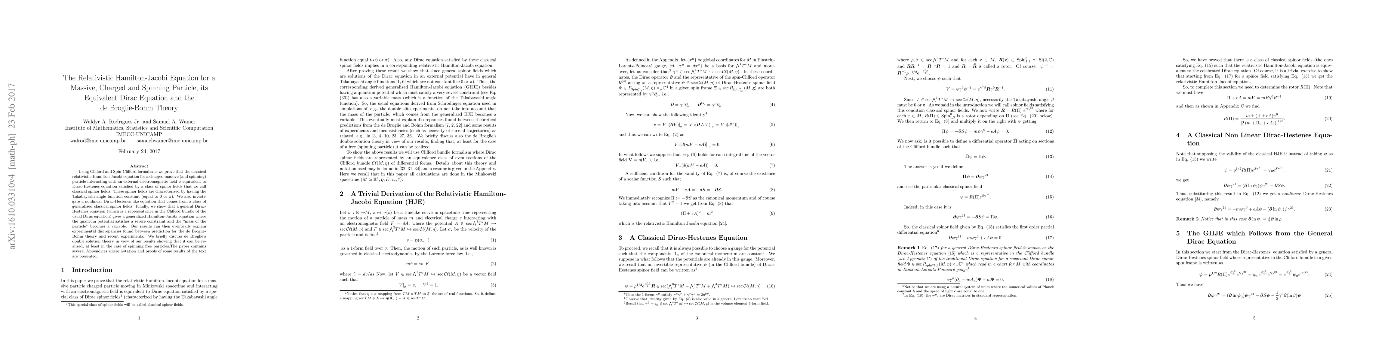 This paper demonstrates that the relativistic Hamilton-Jacobi equation for a charged, spinning particle corresponds to a Dirac-Hestenes equation and explores its relation to the de Broglie-Bohm theory, suggesting it can explain experimental discrepancies. It also investigates generalized spinor fields and their implications for quantum potential constraints.