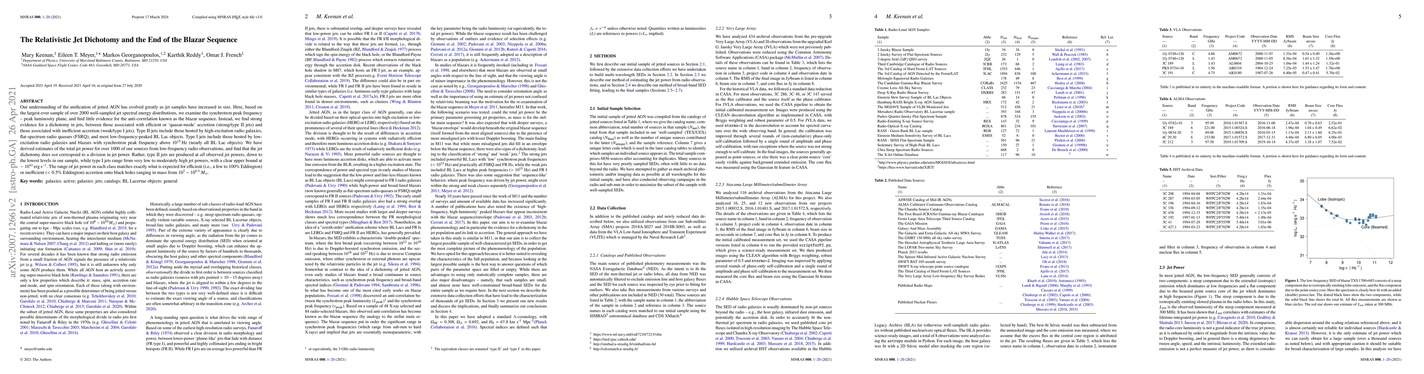 This study reveals a significant dichotomy in relativistic jets of active galactic nuclei (AGN), finding no evidence for the blazar sequence but instead identifying two distinct jet types: efficient "quasar-mode" jets and inefficient jets. The efficient jets correlate with high accretion rates, while inefficient jets show a clear upper limit in jet power.