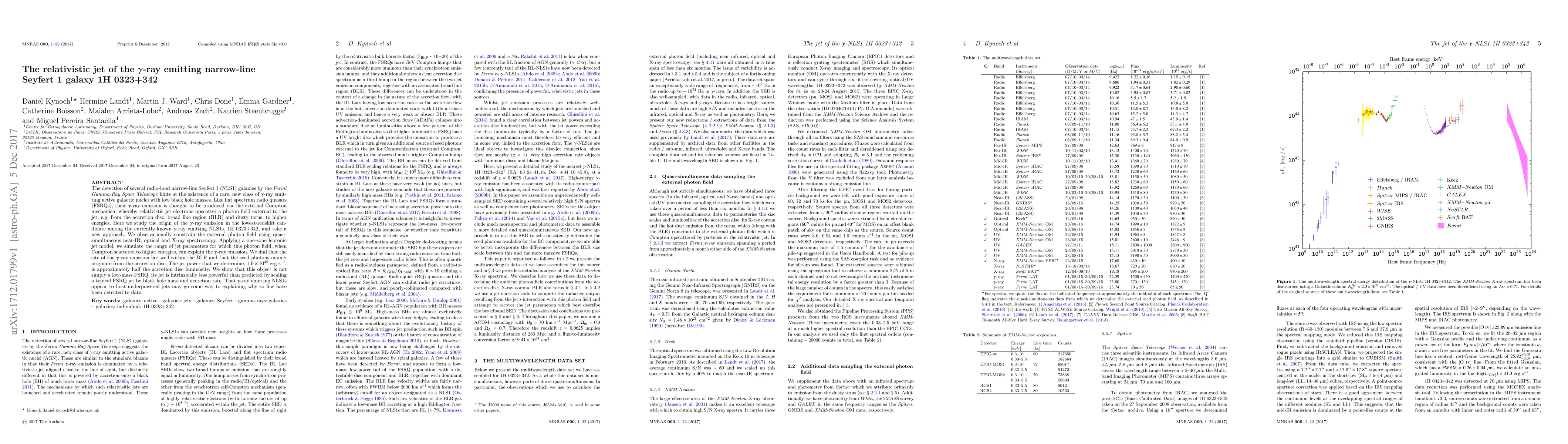 The study uses quasi-simultaneous near-IR, optical, and X-ray spectroscopy to observationally constrain the external photon field in the gamma-ray emitting narrow-line Seyfert 1 galaxy 1H 0323+342. A one-zone leptonic jet model is applied to simulate the range of jet parameters for which this photon field, when Compton scattered to higher energies, can explain the gamma-ray emission.
