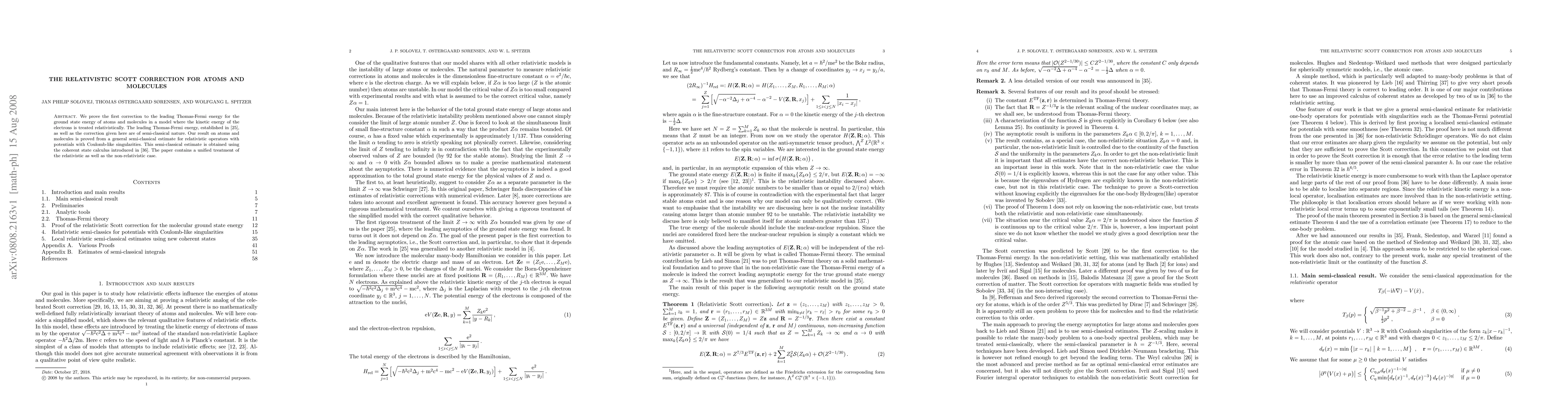 We prove the first correction to the leading Thomas-Fermi energy for the ground state energy of atoms and molecules in a model where the kinetic energy of the electrons is treated relativistically. The leading Thomas-Fermi energy, established in [Sorensen], as well as the correction given here are of semi-classical nature. Our result on atoms and molecules is proved from a general semi-classical estimate for relativistic operators with potentials with Coulomb-like singularities. This semi-classical estimate is obtained using the coherent state calculus introduced in [Solovej-Spitzer]. The paper contains a unified treatment of the relativistic as well as the non-relativistic case.