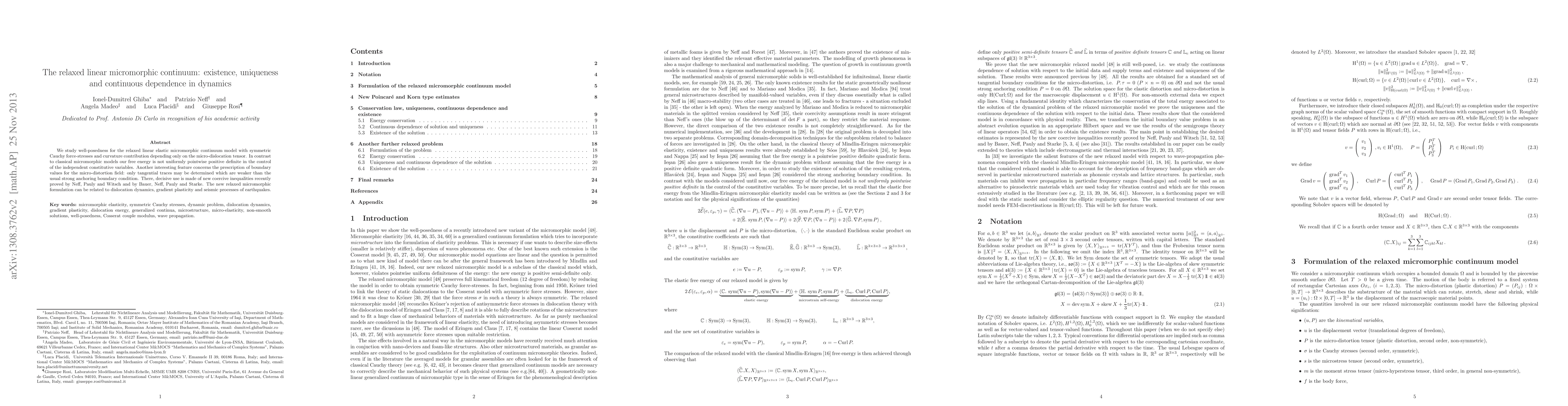 We study well-posedness for the relaxed linear elastic micromorphic continuum model with symmetric Cauchy force-stresses and curvature contribution depending only on the micro-dislocation tensor. In contrast to classical micromorphic models our free energy is not uniformly pointwise positive definite in the control of the independent constitutive variables. Another interesting feature concerns the prescription of boundary values for the micro-distortion field: only tangential traces may be determined which are weaker than the usual strong anchoring boundary condition. There, decisive use is made of new coercive inequalities recently proved by Neff, Pauly and Witsch and by Bauer, Neff, Pauly and Starke. The new relaxed micromorphic formulation can be related to dislocation dynamics, gradient plasticity and seismic processes of earthquakes.
