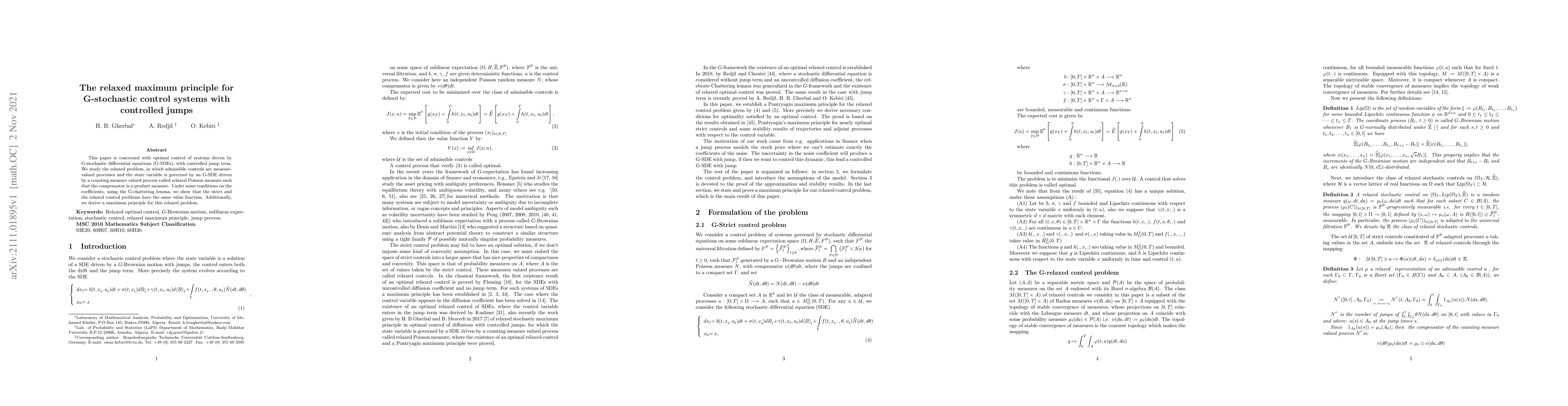 This paper investigates optimal control for G-stochastic systems with controlled jumps, showing that the relaxed control problem's value function matches the strict control problem's under certain conditions, and derives a maximum principle for the relaxed problem.