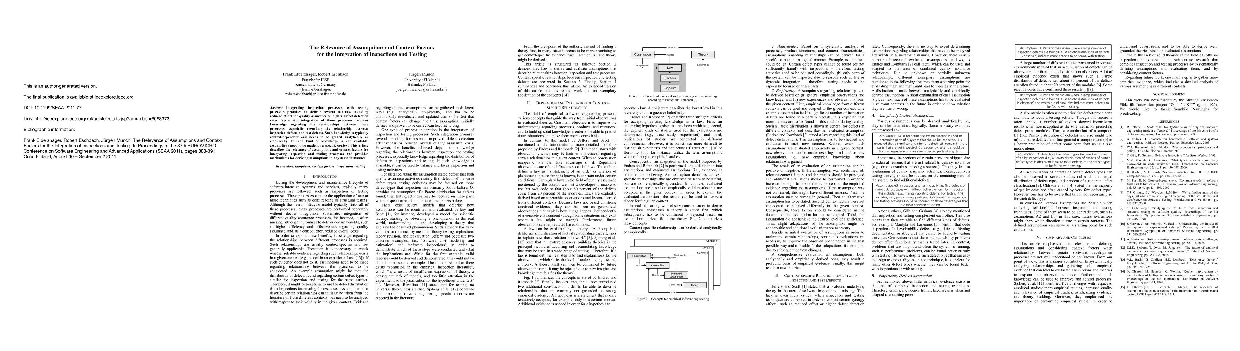 Integrating inspection processes with testing processes promises to deliver several benefits, including reduced effort for quality assurance or higher defect detection rates. Systematic integration of these processes requires knowledge regarding the relationships between these processes, especially regarding the relationship between inspection defects and test defects. Such knowledge is typically context-dependent and needs to be gained analytically or empirically. If such kind of knowledge is not available, assumptions need to be made for a specific context. This article describes the relevance of assumptions and context factors for integrating inspection and testing processes and provides mechanisms for deriving assumptions in a systematic manner.
