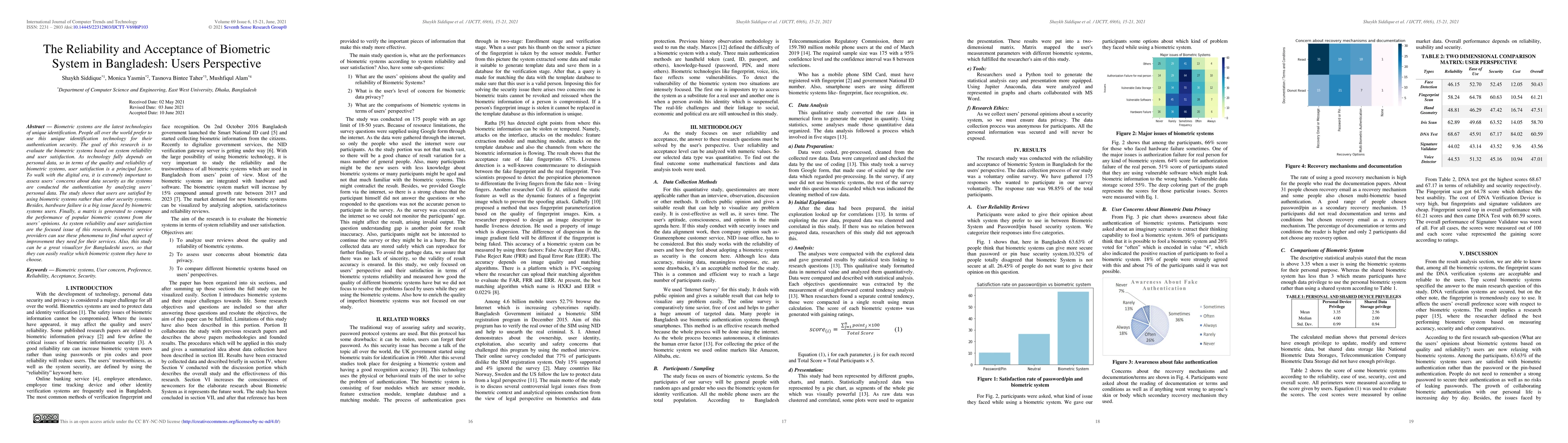 This research evaluates the reliability and acceptance of biometric systems in Bangladesh from users' perspectives, finding high satisfaction but significant hardware failure issues. A comparative matrix is generated to help users choose the best biometric system based on performance and reliability.