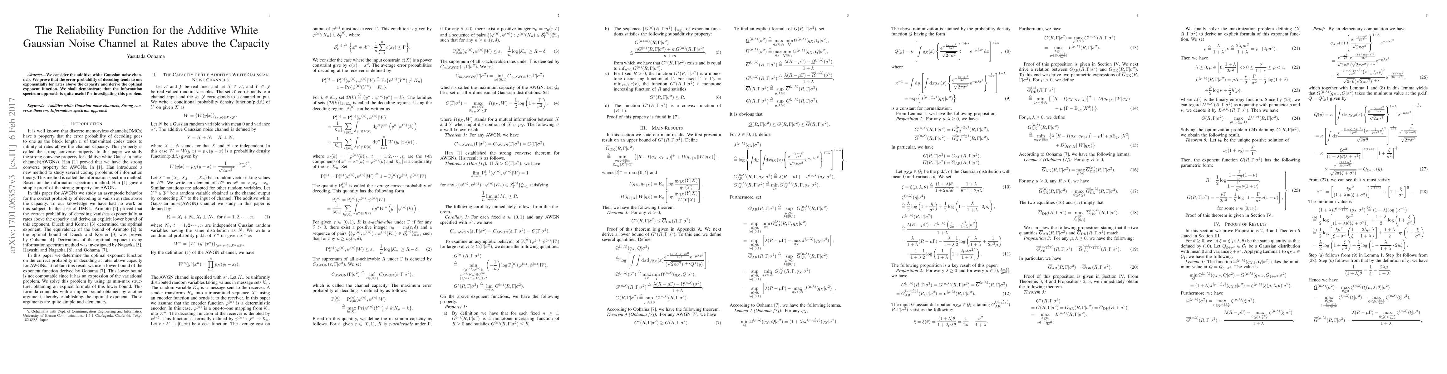 This paper proves that error probability exponentially approaches one for rates exceeding the capacity in additive white Gaussian noise channels and derives the optimal exponent function. The study highlights the effectiveness of the information spectrum approach for analyzing such high-rate scenarios.